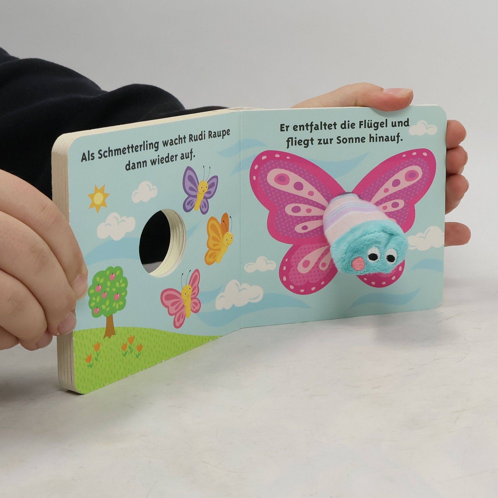Geh mit Rudi Raupe in den Garten, wo er etwas Feines zum Knabbern und Knuspern sucht.
