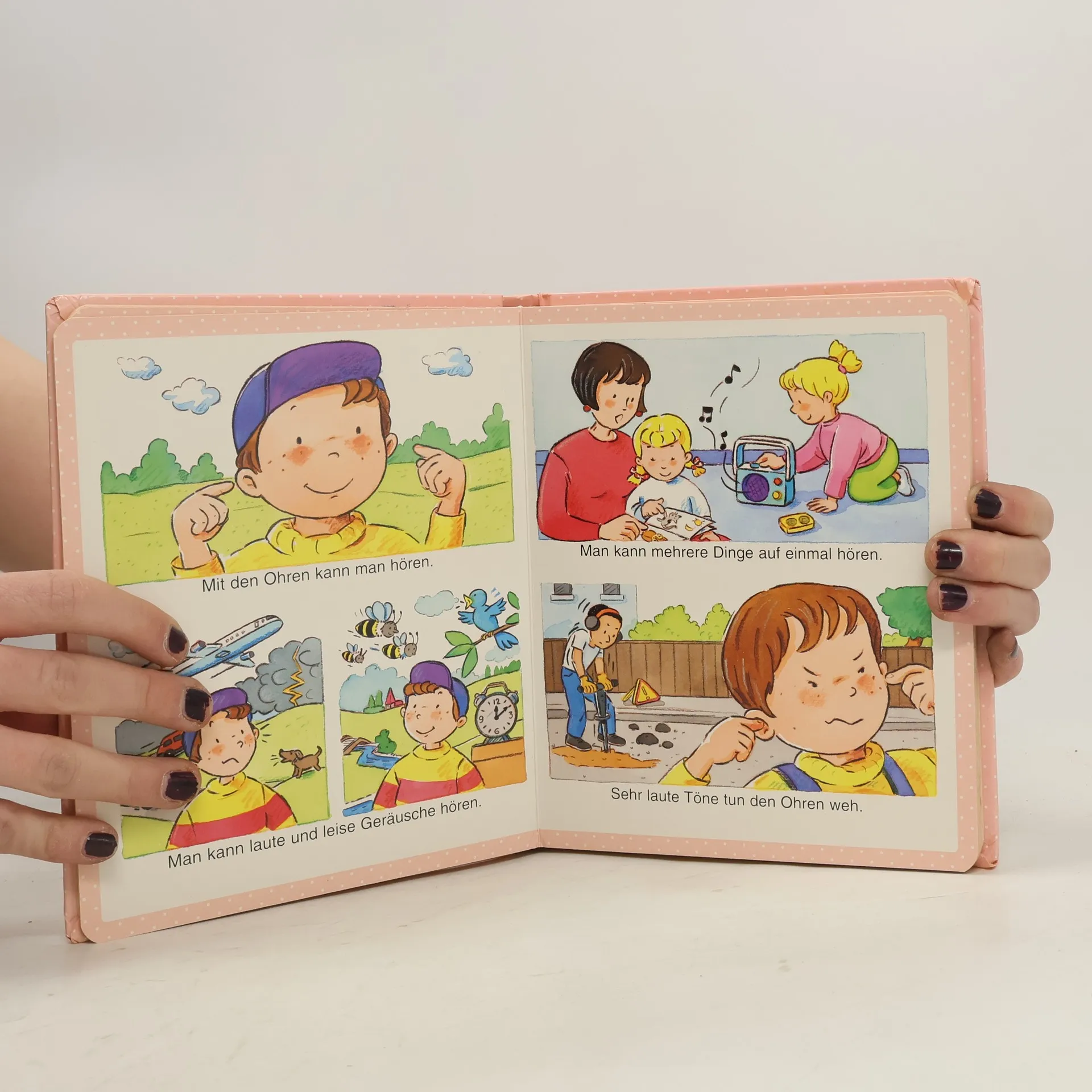 Kinder erwerben mit diesem Buch erstes Wissen über den Körper. Es erklärt Körperteile, wichtige Organe und die fünf Sinne. Zudem wird die Pflege des Körpers, wie das Zähneputzen, kindgerecht durch kurze Texte und bunte Bilder vermittelt.