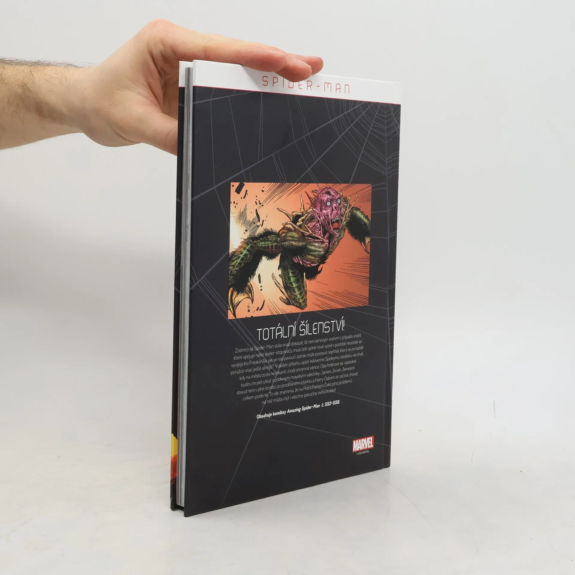Zatímco se Spider-Man stále snaží dokázat, že není sériovým vrahem z případu vražd, které spojuje nález spider-stopovačů, musí čelit úplně nové výzvě v podobě neustále se vyvíjejícího Freaka! Ale jak se náš pavoučí zázrak může postavit nepříteli, který se po každé porážce vrací ještě silnější? V dalším příběhu oplatí Wolverine Spideymu návštěvu ve chvíli, kdy na město zcela nečekaně uhodí ohromná vánice. Oba hrdinové se následně budou muset utkat s podivnými mayskými válečníky. James Jonah Jameson dosud není v plné kondici po prodělaném infarktu a Harry Osborn se začíná chovat celkem podivně. To vše znamená, že na Petra Parkera Čeká plno problémů, na něž můžou být i všechny pavučiny světa krátké!Obsahuje příběh:Totální šílenství!