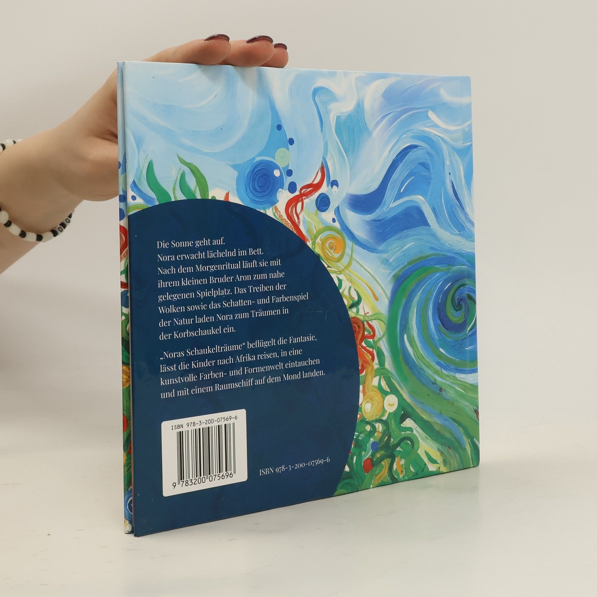 In »Noras Schaukelträume« erwacht Nora fröhlich und verbringt mit ihrem Bruder Aron einen Tag voller Abenteuer auf dem Spielplatz. Die Natur inspiriert sie zu fantastischen Träumen, die sie nach Afrika und in eine bunte Formenwelt führen, bis sie schließlich mit einem Raumschiff den Mond erreicht.