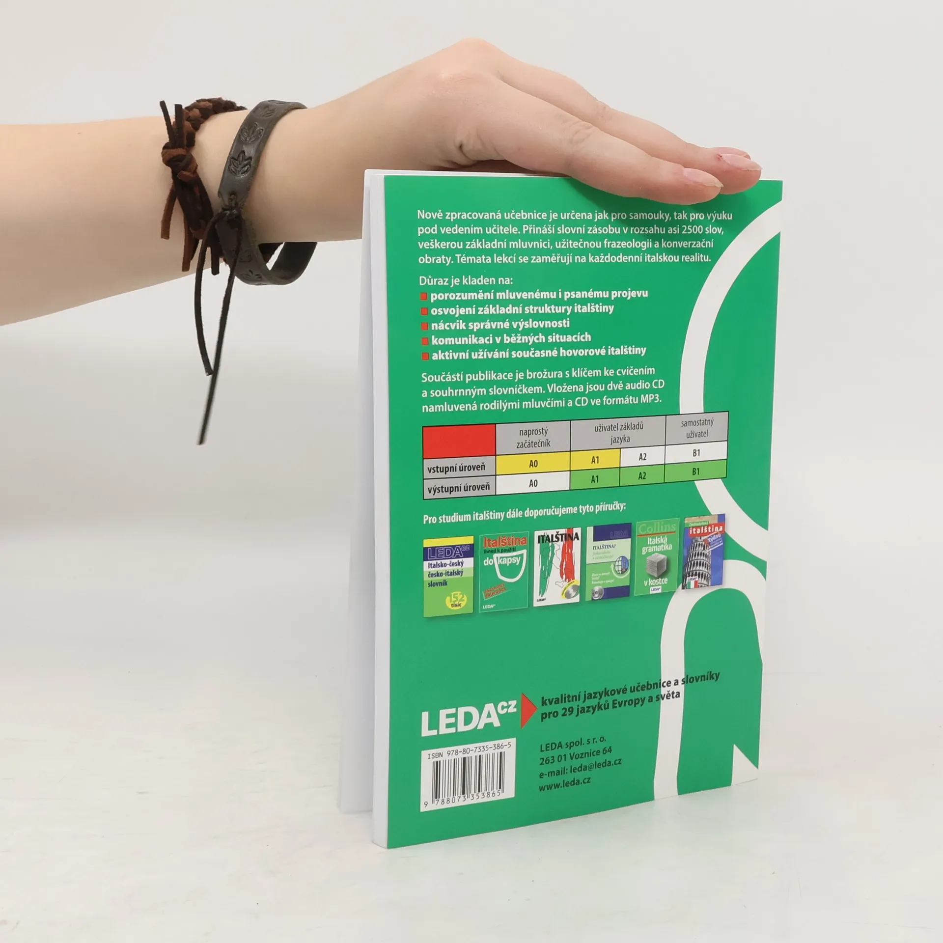 Oblíbená učebnice pro samouky obsahuje italskou mluvnici, slovní zásobu v rozsahu asi 2500 slov, frazeologii a výslovnost. Důraz je kladen na aktivní užívání italštiny, schopnost dorozumět se a pohotově reagovat v nejčastějších situacích. Každou lekci uzavírají kvizy, které mají vzbudit zájem uživatele o kulturu Itálie. Učebnice je určena také pro kursy a školy. Její součástí je klíč ke cvičením s italsko-českým a česko-italským slovníčkem v samostatné brožuře a nahrávka vybraných textů na dvou audio CD.