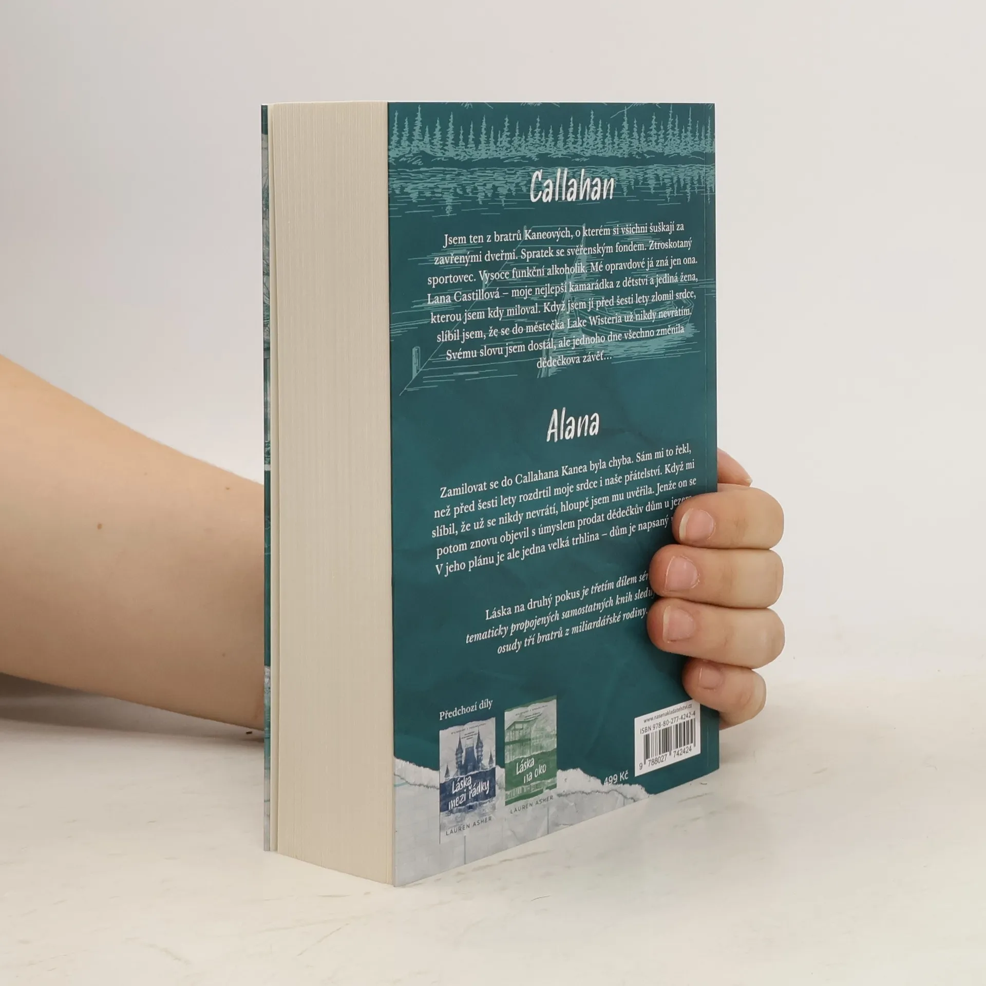 Callahan: Jsem ten z bratrů Kaneových, o kterém si všichni šuškají za zavřenými dveřmi. Spratek se svěřenským fondem. Ztroskotaný sportovec. Vysoce funkční alkoholik. Mé opravdové já zná jen ona. Lana Castillová – moje nejlepší kamarádka z dětství a jediná žena, kterou jsem kdy miloval. Když jsem jí před šesti lety zlomil srdce, slíbil jsem, že se do městečka Lake Wisteria už nikdy nevrátím. Svému slovu jsem dostál, ale jednoho dne všechno změnila dědečkova závěť. Jako podmínku k získání dědictví jsem dostal za úkol strávit léto v rodinném domě u jezera a potom ho prodat. Na první pohled se to zdálo jednoduché, ale můj plán šel hned první den ke dnu. Ukázalo se totiž, že Lana v domě nejen bydlí, ale dokonce je přesvědčená, že jí i patří. ----- Alana: Zamilovat se do Callahana Kanea byla chyba. Sám mi to řekl, než před šesti lety rozdrtil moje srdce i naše přátelství. Když mi slíbil, že už se nikdy nevrátí, hloupě jsem mu uvěřila. Jenže on se potom znovu objevil s úmyslem prodat dědečkův dům u jezera. V jeho plánu je ale jedna velká trhlina – dům je napsaný na mě. Láska na druhý pokus je třetím dílem série tematicky propojených samostatných knih sledujících osudy tří bratrů z miliardářské rodiny.