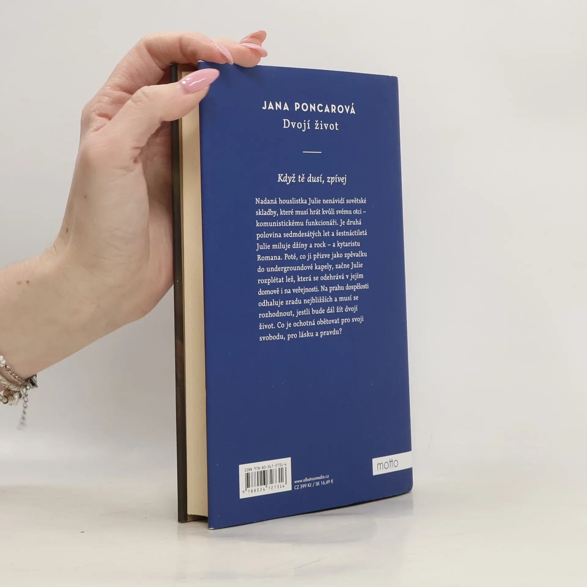 Román české autorky vypravuje příběh mladé hudebnice v poměrech normalizačního Československa. Nadaná houslistka Julie nenávidí kousavé šaty a sovětské skladby, které musí hrát kvůli svému otci, komunistickému funkcionáři. Je druhá polovina sedmdesátých let a Julie miluje džíny a rock. A taky kytaristu Romana. Poté, co ji Roman přizve jako zpěvačku do undergroundové kapely, začne Julie rozplétat lež, která se odehrává v jejím domově i na veřejnosti. Na prahu dospělosti odhaluje zradu nejbližších a musí se rozhodnout, jestli bude i nadále žít dvojí život. Co všechno je ochotná obětovat pro osobní svobodu, pro lásku a pravdu? Nakladatelská anotace.