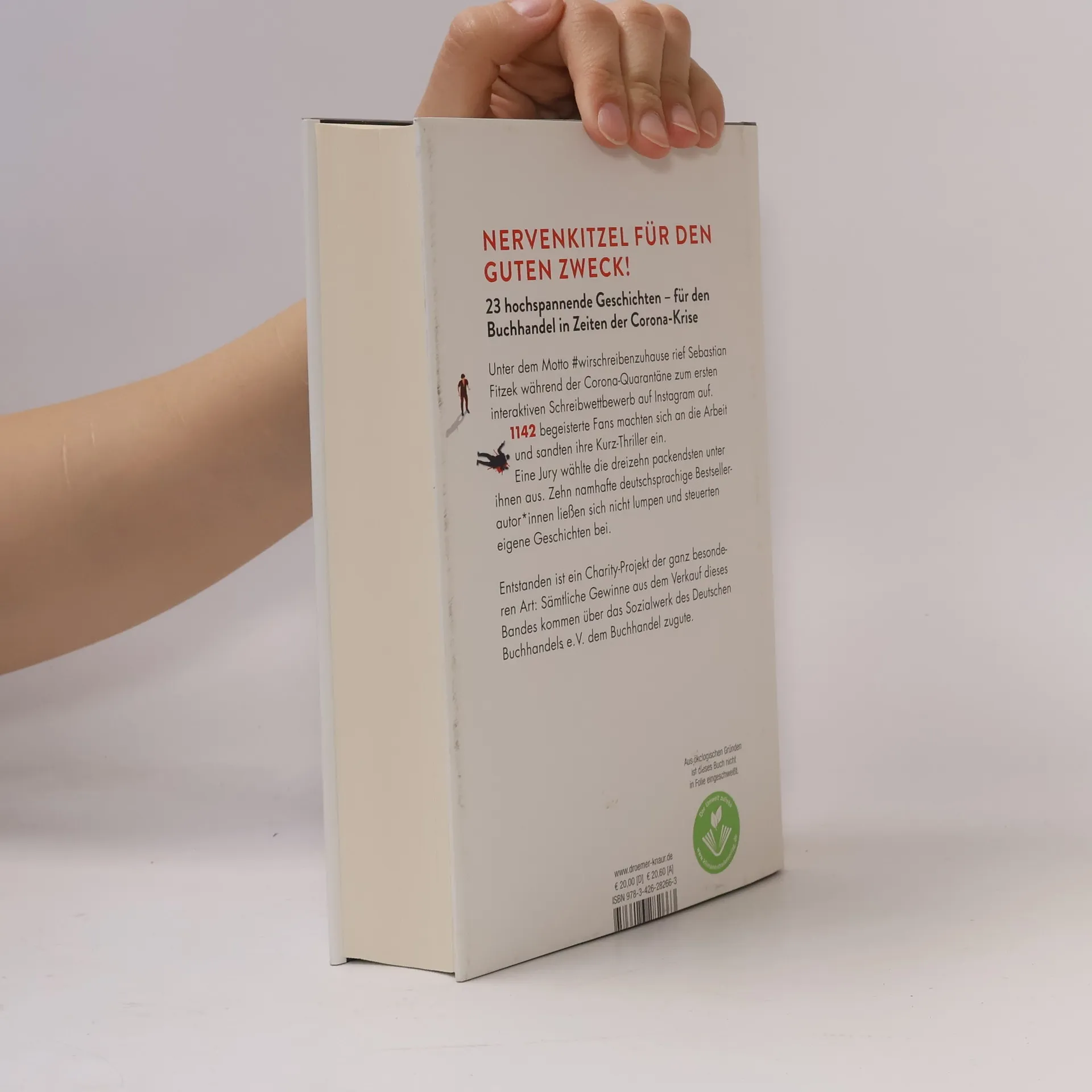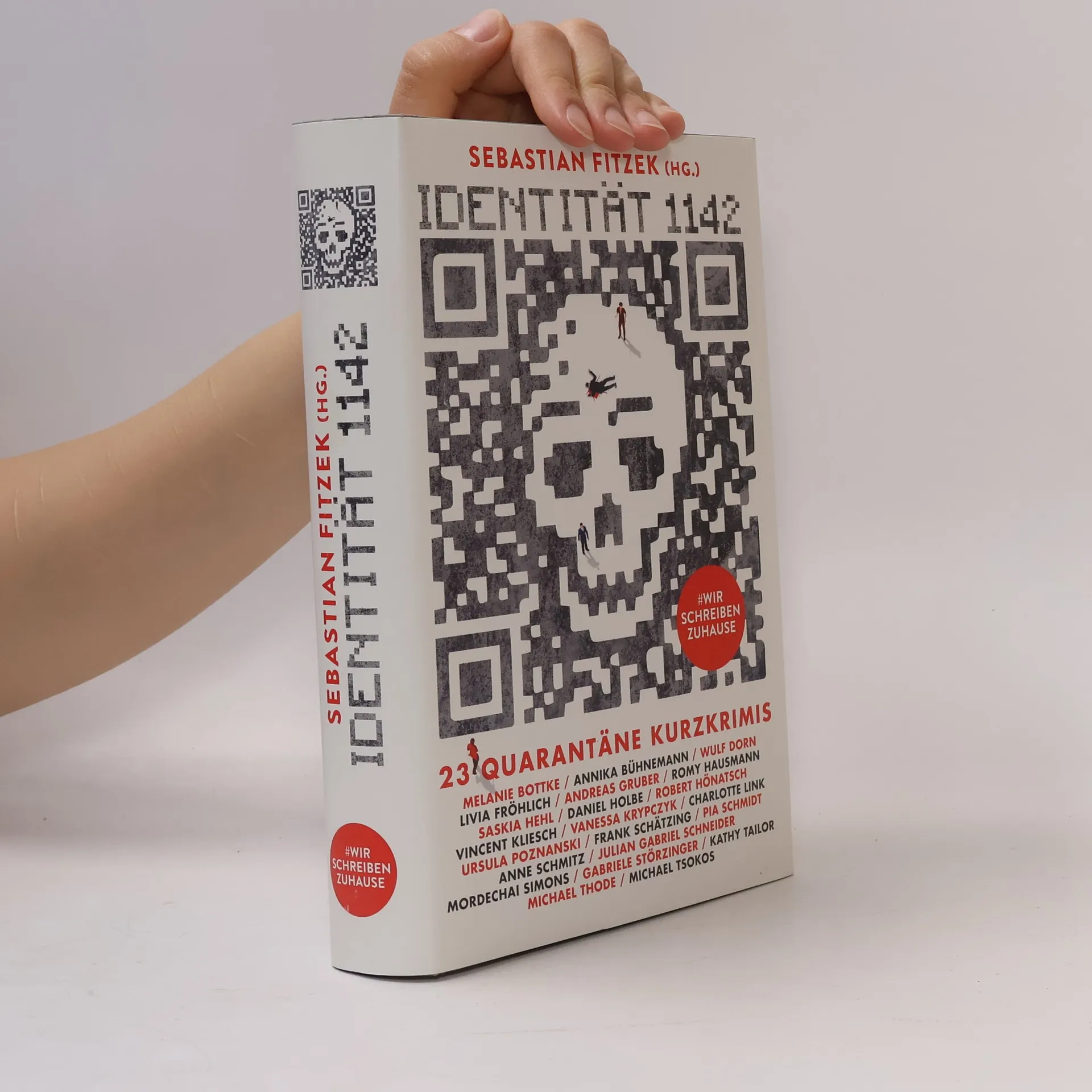 Die Pandemie-Zwangspause nutzen und gemeinsam ein Buch schreiben! Sebastian Fitzek, Tausende Thriller-Fans und namhafte deutschsprachige Bestseller-AutorInnen unterstützen mit spannenden Kurzgeschichten den Buchhandel in Zeiten der Corona-Krise Unter dem Motto #wirschreibenzuhause hat Bestseller-Autor Sebastian Fitzek Ende März 2020 seine Instagram-Follower zu einem interaktiven Schreibwettbewerb aufgerufen. 1142 begeisterte Fans machten sich an die Arbeit und sandten ihre Thriller-Storys ein, die sich um das Thema “Identität” drehen, um das Motiv “Rache” und um den Fund eines Handys mit bedrohlichen Bildern darauf - Nervenkitzel pur! Eine Jury aus AutorInnen, Agenten und VerlagsmitarbeiterInnen wählte die dreizehn packendsten Geschichten aus, die nun in der Thriller-Anthologie \"Identität 1142\" erscheinen. Zusätzlich steuerten zehn der erfolgreichsten deutschsprachigen BestsellerautorInnen eigene spannende Kurzgeschichten bei: Wulf Dorn, Andreas Gruber, Romy Hausmann, Daniel Holbe, Vincent Kliesch, Charlotte Link, Ursula Poznanski, Frank Schätzing und Michael Tsokos - sowie natürlich Sebastian Fitzek selbst. Entstanden ist ein Charity-Projekt der ganz besonderen Art: Sämtliche Gewinne aus dem Verkauf der Kurzgeschichten-Anthologie kommen über das Sozialwerk des Deutschen Buchhandels e.V. dem Buchhandel zugute!