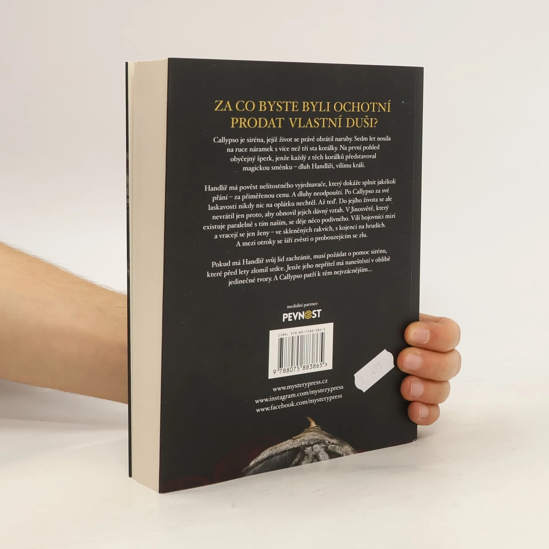 ZA CO BYSTE BYLI OCHOTNÍ PRODAT VLASTNÍ DUŠI?Callypso je siréna, jejíž život se právě obrátil naruby. Sedm let nosila na ruce náramek s více než tři sta korálky. Na první pohled obyčejný šperk, jenže každý z těch korálků představoval magickou směnku – dluh Handlíři, vílímu králi.Handlíř má pověst nelítostného vyjednavače, který dokáže splnit jakékoli přání – za přiměřenou cenu. A dluhy neodpouští. Po Callypso za své laskavosti nikdy nic na oplátku nechtěl. Až teď. Do jejího života se ale nevrátil jen proto, aby obnovil jejich dávný vztah. V Jinosvětě, který existuje paralelně s tím naším, se děje něco podivného. Vílí bojovníci mizí a vracejí se jen ženy – ve skleněných rakvích, s kojenci na hrudích. A mezi otroky se šíří zvěsti o probouzejícím se zlu.Pokud má Handlíř svůj lid zachránit, musí požádat o pomoc sirénu, které před lety zlomil srdce. Jenže jeho nepřítel má naneštěstí v oblibě jedinečné tvory. A Callypso patří k těm nejvzácnějším…