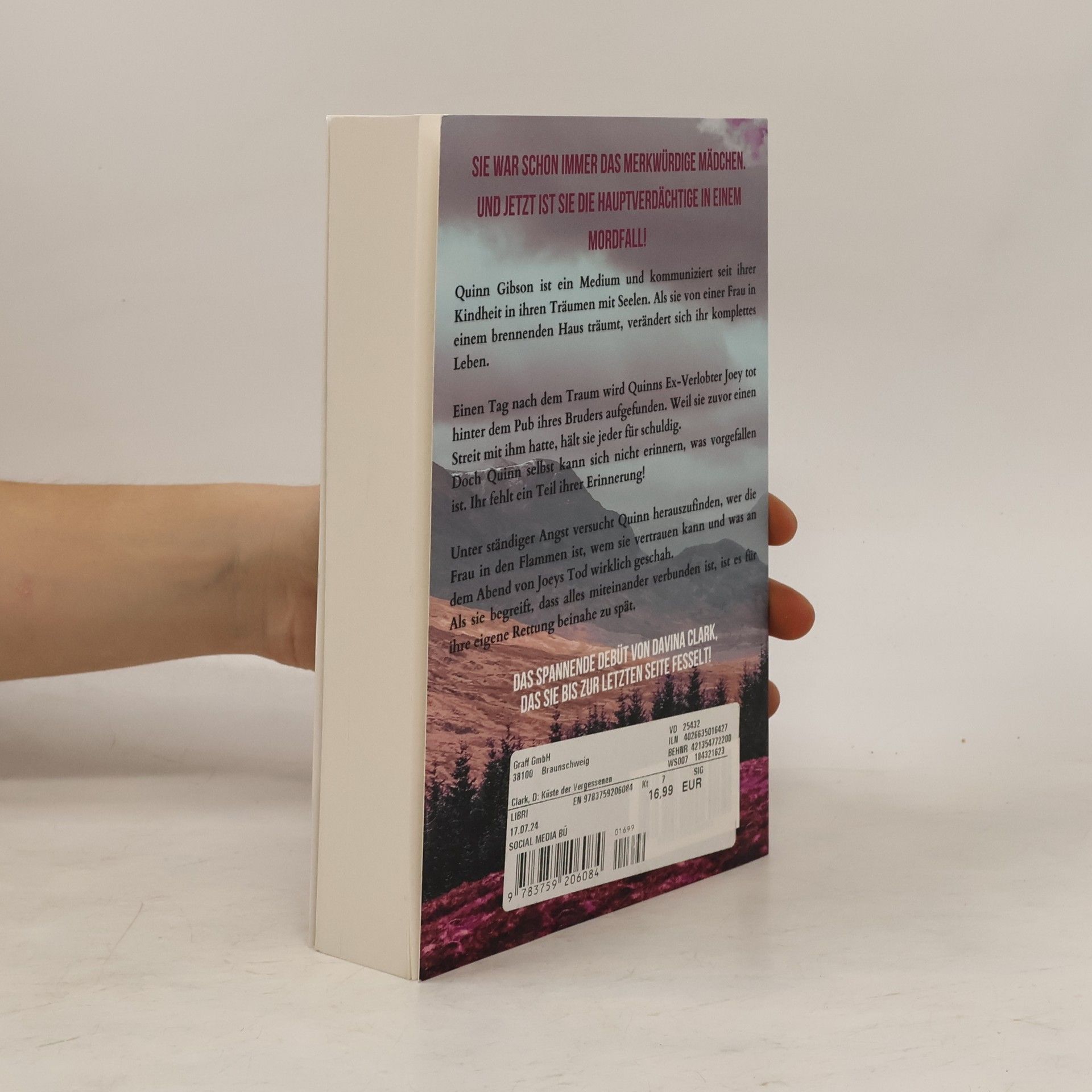 Quinn Gibson, ein Medium, wird zur Hauptverdächtigen in einem Mordfall, nachdem ihr Ex-Verlobter tot aufgefunden wird. Sie hat von einer Frau in einem brennenden Haus geträumt und verliert Teile ihrer Erinnerung. Auf der Suche nach der Wahrheit stößt sie auf Drohungen und entdeckt Verbindungen zu Joeys Tod. Ein spannender Mystery Thriller von Davina Clark.