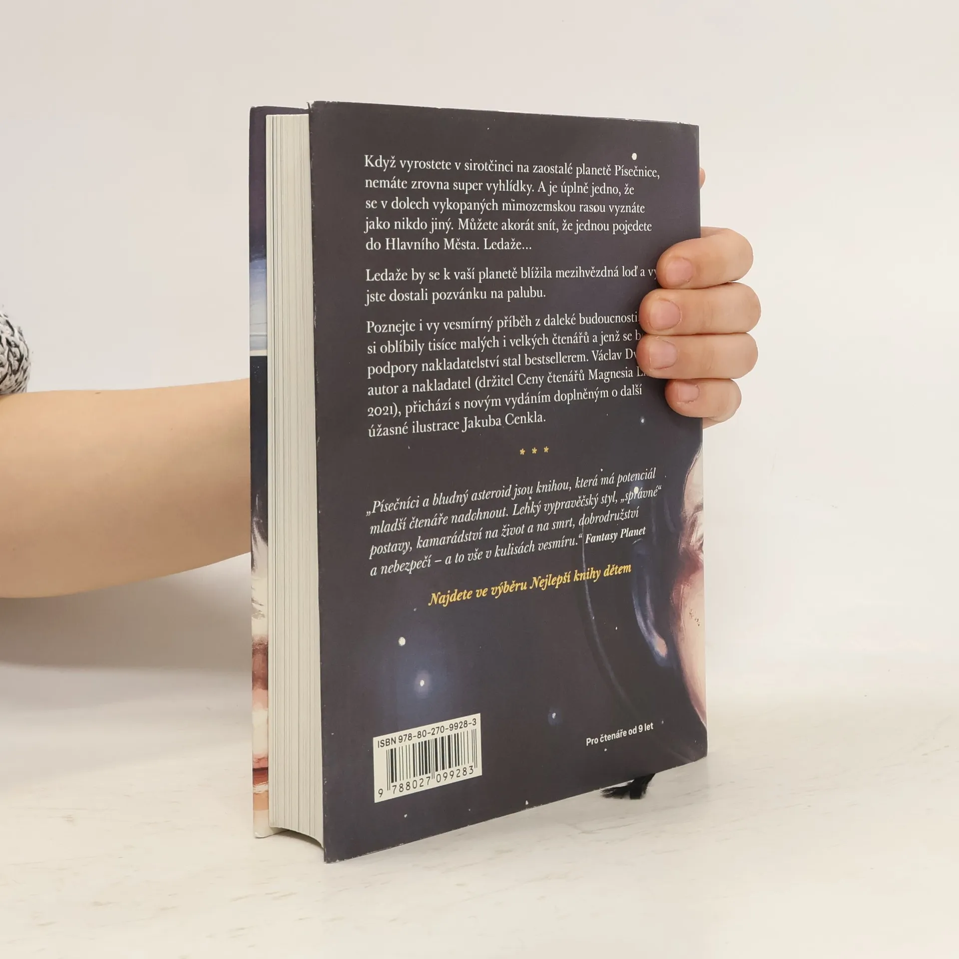 Když vyrůstáte v sirotčinci na zaostalé planetě Písečnice, nemáte zrovna super vyhlídky. A je úplně jedno, že se v dolech vykopaných mimozemskou rasou vyznáte jako nikdo jiný. Můžete akorát snít, že jednou pojedete do Hlavního Města. Ledaže… Ledaže by se k vaší planetě blížila mezihvězdná loď a vy jste dostali pozvánku na palubu. Potom si musíte vybrat: navždy odletět a studovat na vesmírné akademii pro tajemné pátrače, nebo zůstat a pokusit se odhalit tajemství své minulosti. Vesmírné dobrodružství pro děti, mládež a rodiče, s ilustracemi Jakuba Cenkla.