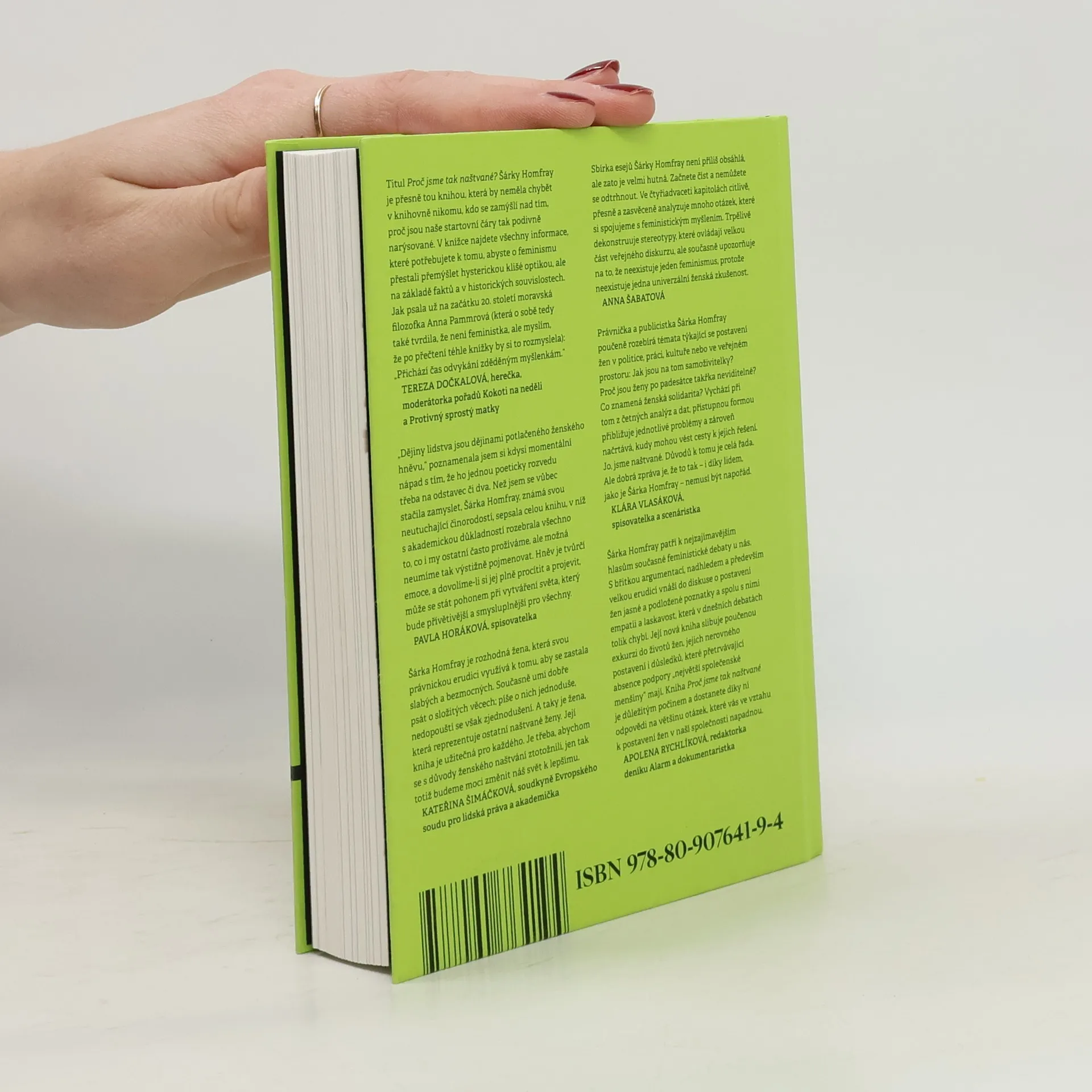 Kniha Proč jsme tak naštvané? od Šárky Homfray nabízí čtyřiadvacet výstižných a daty podložených esejů, které zkoumají postavení žen v současném Česku. Autorka, odborová právnička a feministka, se zaměřuje na rozdíly v životních dráhách žen a mužů, které jsou ovlivněny společenským očekáváním. S ironií a kritickým pohledem komentuje genderové nerovnosti ve školství, pracovním prostředí, vědě, politice i zdravotnictví, a čerpá přitom ze svých zkušeností i ze společenskovědních výzkumů, zejména českých. Homfray odhaluje, že problémy, s nimiž se ženy potýkají, nejsou výsledkem náhody, ale hluboce zakořeněného společenského nastavení. Kniha si klade za cíl proměnit hněv, který vyvolává nespravedlivý systém, ve strategie vedoucí k pozitivním změnám v české společnosti.