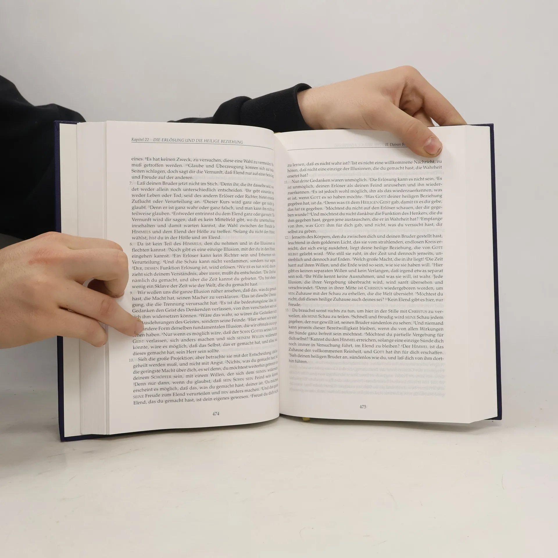 EIN KURS IN WUNDERN ist aufgrund seiner Synthese von zeitlosen geistigen Einsichten und wesentlichen psychologischen Erkenntnissen einzigartig unter den spirituellen Traditionen der Welt. Er zeigt uns einen Weg zu innerem Frieden, zu einem Dasein, das in der Welt, aber nicht von der Welt ist. Der Kurs ist nicht als Grundlage für eine neue Religion, Bewegung oder Vereinigung gedacht. Vielmehr dient er unabhängig von äußeren Autoritäten dem Selbststudium. Er richtet sich an Menschen, die nach einer friedlicheren Betrachtungsweise für ihr Leben und ihren Alltag suchen. Das Werk besteht aus dem Textbuch, dem Übungsbuch und dem Handbuch für Lehrer. Im Textbuch werden die Konzepte dargelegt, auf denen das Denksystem des Kurses gründet. Die darin enthaltenen Gedanken stellen die Grundlage für die 365 Lektionen des Übungsbuches dar, bei denen das Hauptgewicht auf der täglichen Erfahrung durch die Anwendung liegt. Das Handbuch für Lehrer gibt Antworten auf viele Fragen, die sich beim Studium ergeben. Wunder im Sinne des Kurses haben nichts mit unerklärlichen Phänomenen in der Außenwelt zu tun, sondern sind ausschließlich innere Veränderungen, die uns daran erinnern, dass es tief in uns verborgen eine Identität der Liebe gibt, die keinen Angriff, sondern nur Frieden kennt. Weitere Informationen unter www.greuthof.de