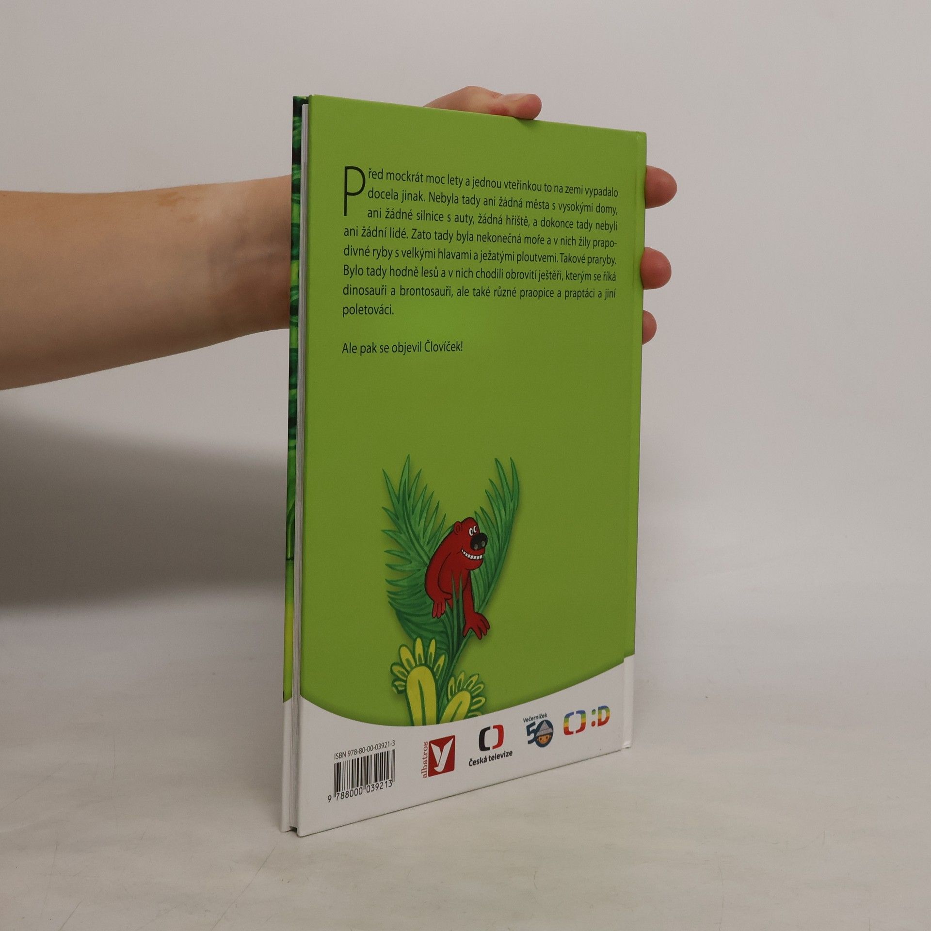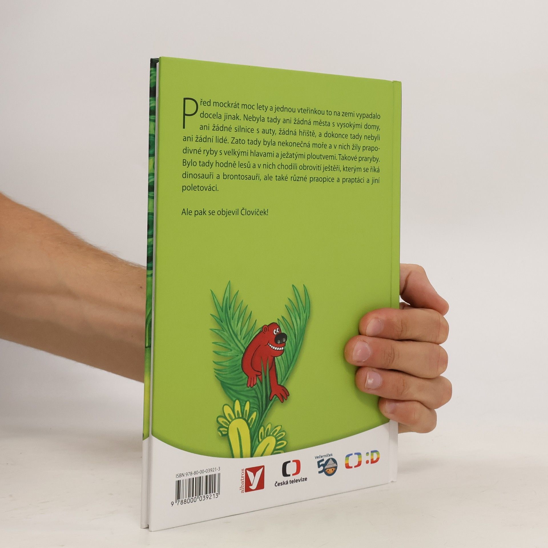 Před mockrát moc lety a jednou vteřinkou to na zemi vypadalo docela jinak. Nebyla tady ani žádná města s vysokými domy, ani žádné silnice s auty, žádná hřiště, a dokonce tady nebyli ani žádní lidé. Zato tady byla nekonečná moře a v nich žily prapodivné ryby s velkými hlavami a ježatými ploutvemi. Takové praryby. Bylo tady hodně lesů a v nich chodili obrovité ještěři, kterým se říká dinosauři brontosauři, ale také různé praopice a praptáci a jiní poletováci. Ale pak se objevil Človíček!