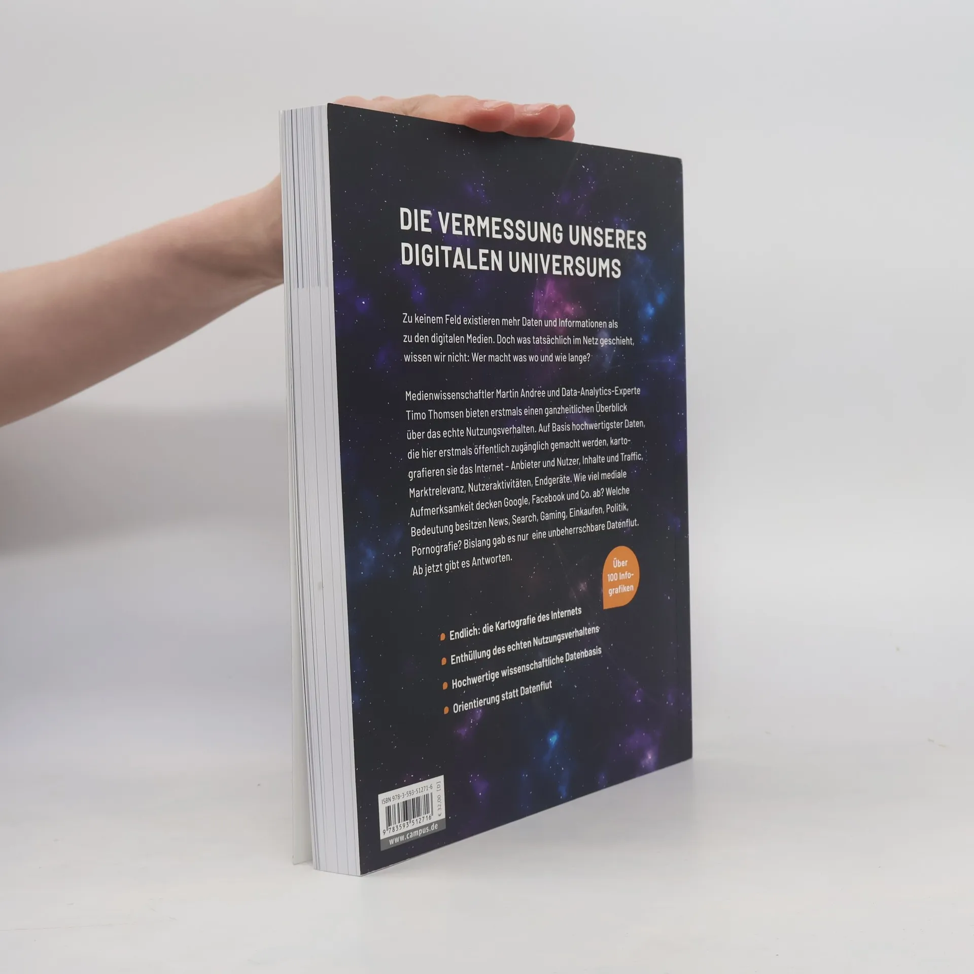 Martin Andree und Timo Thomsen bieten einen umfassenden Überblick über das tatsächliche Nutzungsverhalten im Internet. Sie analysieren qualitativ hochwertige Daten zu Anbietern, Nutzern, Inhalten und Aktivitäten und klären die mediale Aufmerksamkeit von Plattformen wie Google und Facebook sowie die Bedeutung verschiedener Themenbereiche.