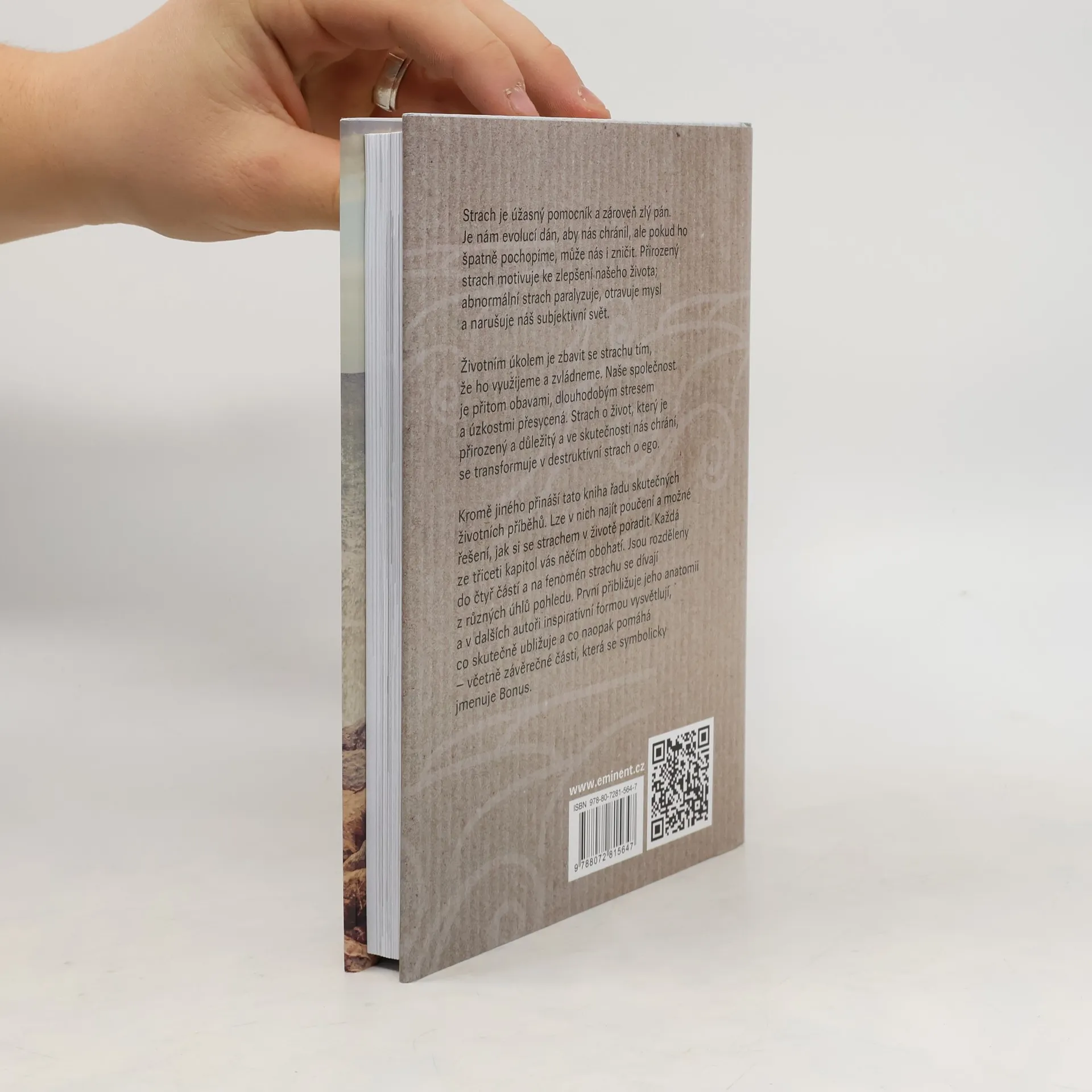 Strach je úžasný pomocník a zároveň zlý pán. Je nám evolucí dán, aby nás chránil, ale pokud ho špatně pochopíme, může nás i zničit. Přirozený strach motivuje ke zlepšení našeho života; abnormální strach paralyzuje, otravuje mysl a narušuje náš subjektivní svět. Životním úkolem je zbavit se strachu tím, že ho využijeme a zvládneme. Naše společnost je přitom obavami, dlouhodobým stresem a úzkostmi přesycená. Strach o život, který je přirozený a důležitý a ve skutečnosti nás chrání, se transformuje v destruktivní strach o ego. Kromě jiného přináší tato kniha řadu skutečných životních příběhů. Lze v nich najít poučení a možné řešení, jak si se strachem v životě poradit. Každá ze třiceti kapitol vás něčím obohatí. Jsou rozděleny do čtyř částí a na fenomén strachu se dívají z různých úhlů pohledu. První přibližuje jeho anatomii a v dalších autoři inspirativní formou vysvětlují, co skutečně ubližuje a co naopak pomáhá - včetně závěrečné části, která se symbolicky jmenuje Bonus.