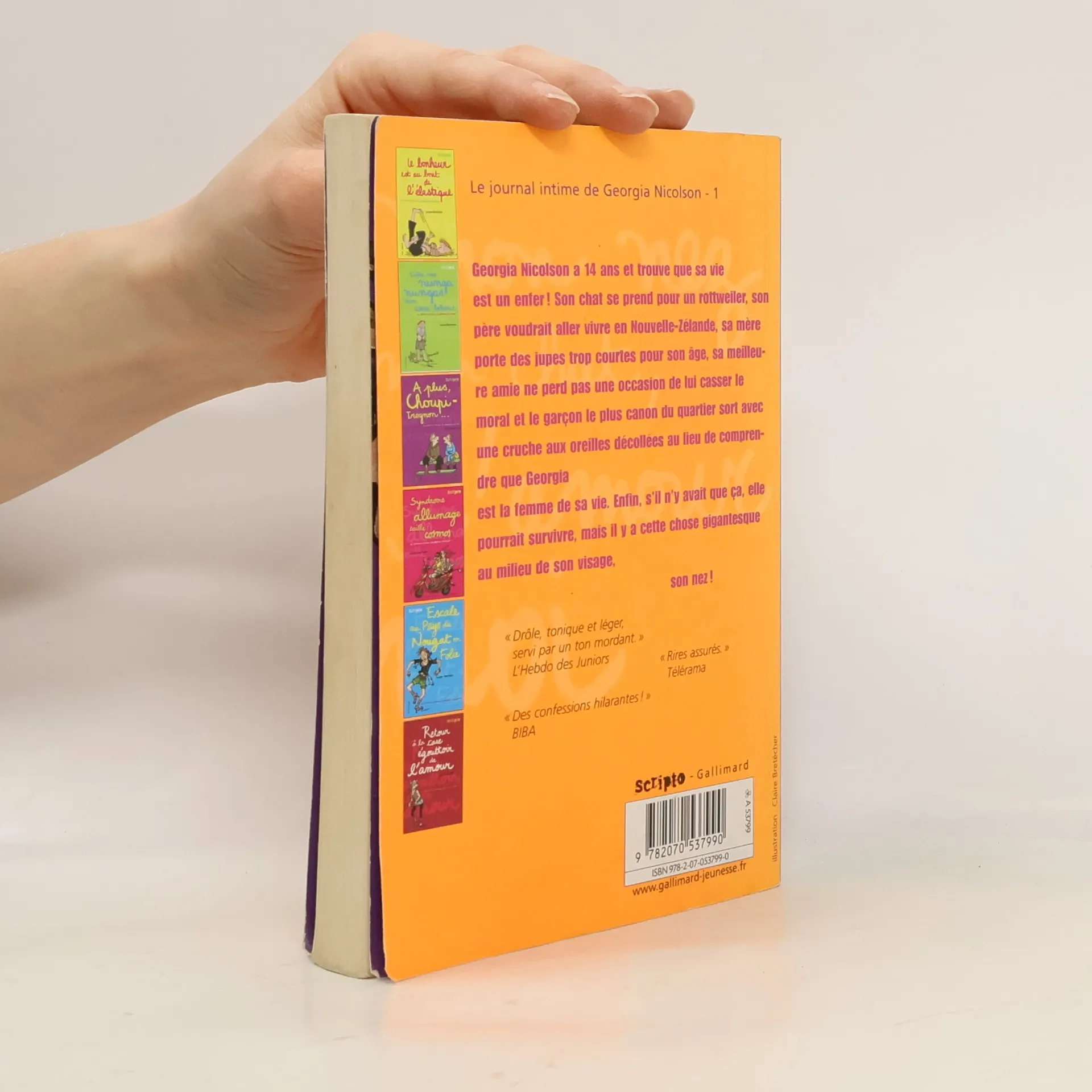 Georgia Nicolson a 14 ans et trouve que sa vie est un enfer ! Son chat se prend pour un rottweiler, son père voudrait aller vivre en Nouvelle-Zélande, sa mère porte des jupes trop courtes pour son âge, sa meilleure amie ne perd pas une occasion de lui casser le moral et le garçon le plus canon du quartier sort avec une cruche aux oreilles décollées au lieu de comprendre que Georgia est la femme de sa vie. Enfin, s'il n'y avait que ça, elle pourrait survivre, mais il y a cette chose gigantesque au milieu de son visage, son nez !