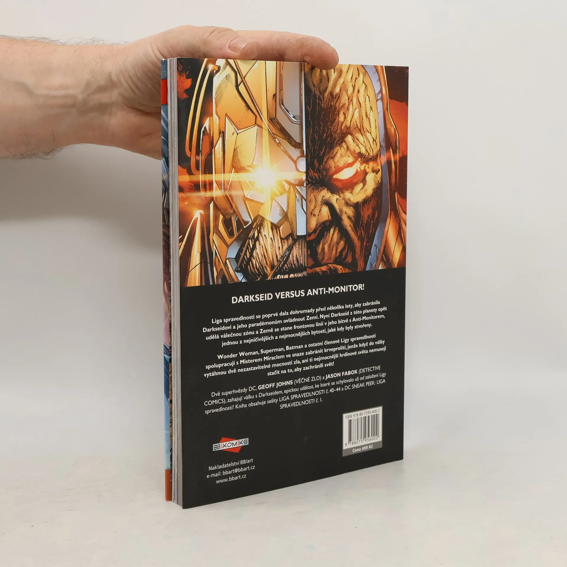 Liga spravedlnosti se poprvé dala dohromady před několika lety, aby zabránila Darkseidovi a jeho paradémonům ovládnout Zemi. Nyní Darkseid z této planety opět udělá válečnou zónu a Země se stane frontovou linií v jeho bitvě s Anti-Monitorem, jednou z nejničivějších a nejmocnějších bytostí, jaké kdy byly stvořeny.Wonder Woman, Superman, Batman a ostatní členové Ligy spravedlnosti spolupracují s Misterem Miraclem ve snaze zabránit krveprolití, jenže když do války vytáhnou dvě nezastavitelné mocnosti zla, ani ti nejmocnější hrdinové světa nemusejí stačit na to, aby zachránili svět!Dvě superhvězdy DC, Geoff Johns (VĚČNÉ ZLO) a Jason Fabok (DETECTIVE COMICS), zahajují válku s Darkseidem, epickou událost, ke které se schylovalo už od založení Ligy spravedlnosti! Kniha obsahuje sešity Liga spravedlnosti č. 40–44 a DC Sneak Peek: Liga spravedlnosti č. 1.