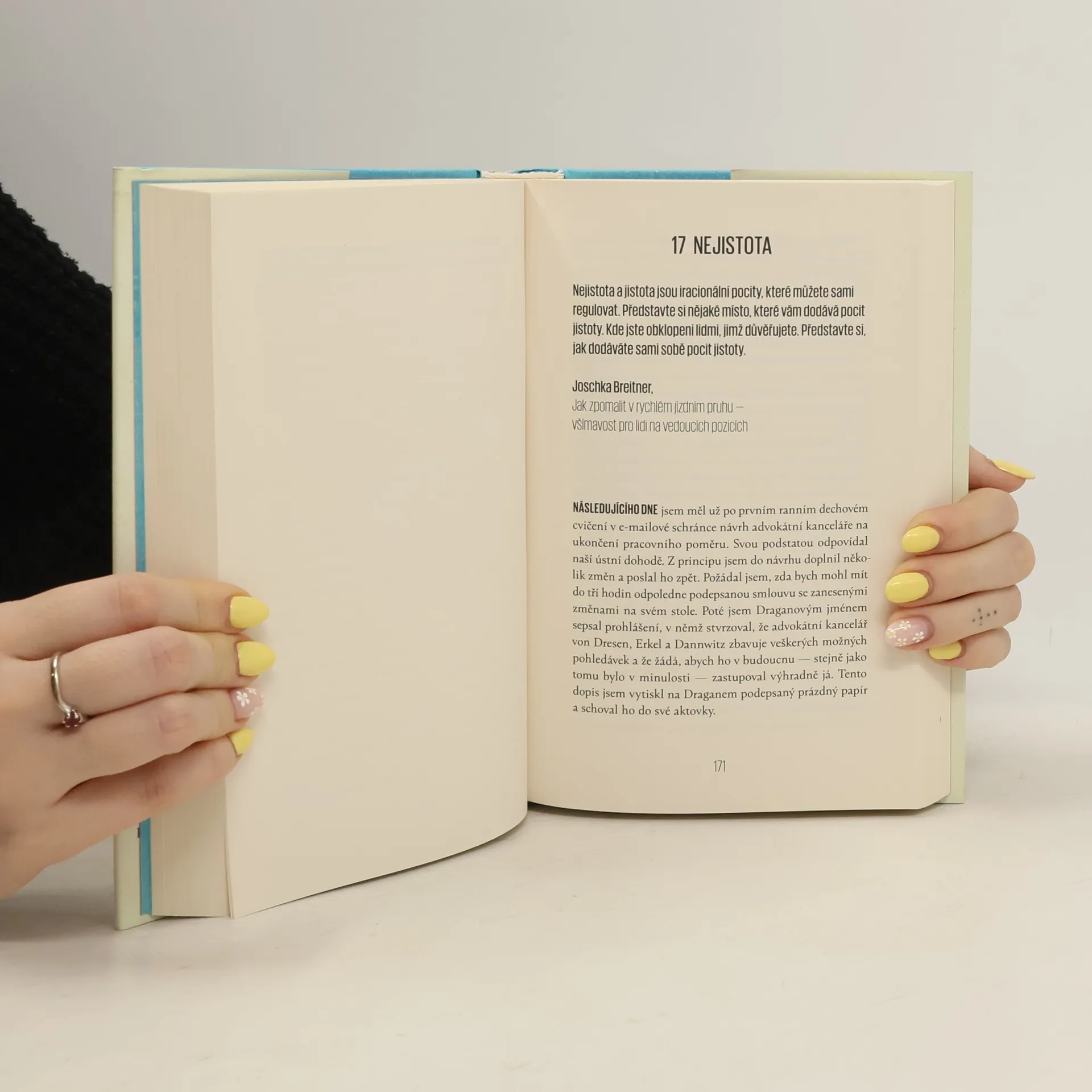 Jak vám může kurz mindfulness změnit život? Třeba vraždou. Právník Björn Diemel se stará o to, aby se mizerové nedostali do takového průšvihu, jaký by si zasloužili. Ve své profesi je třída, ovšem takový úspěch není zadarmo. Za život v přepychu platí Björn neustálým stresem — den má příliš málo hodin, nedokáže vypnout, jeho žena Katharina mu leze na nervy a svoji dceru téměř nevidí. Katharině už ale s manželem dochází trpělivost, a tak se Björn rozhodne zkusit poslední zoufalý krok — vydá se za koučem mindfulness neboli všímavosti. Ačkoli Björn považuje všímavost jen za další odvar pochybného ezoterického čaje, pro záchranu rodiny je ochoten udělat cokoli. A po několika sezeních zjistí, že mu všímavost opravdu pomáhá dostat život pod kontrolu. Má to však jeden háček — Björnův mandant, podezřelý například z daňových úniků, zpronevěr či ublížení na zdraví, se s poklidným životním stylem příliš neslučuje. A proto je třeba začít vraždit. S láskou a bez jakéhokoli hodnocení. Prostě všímavě.