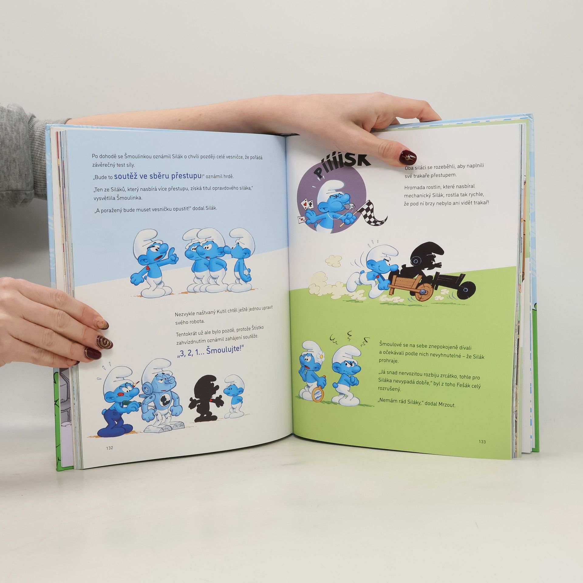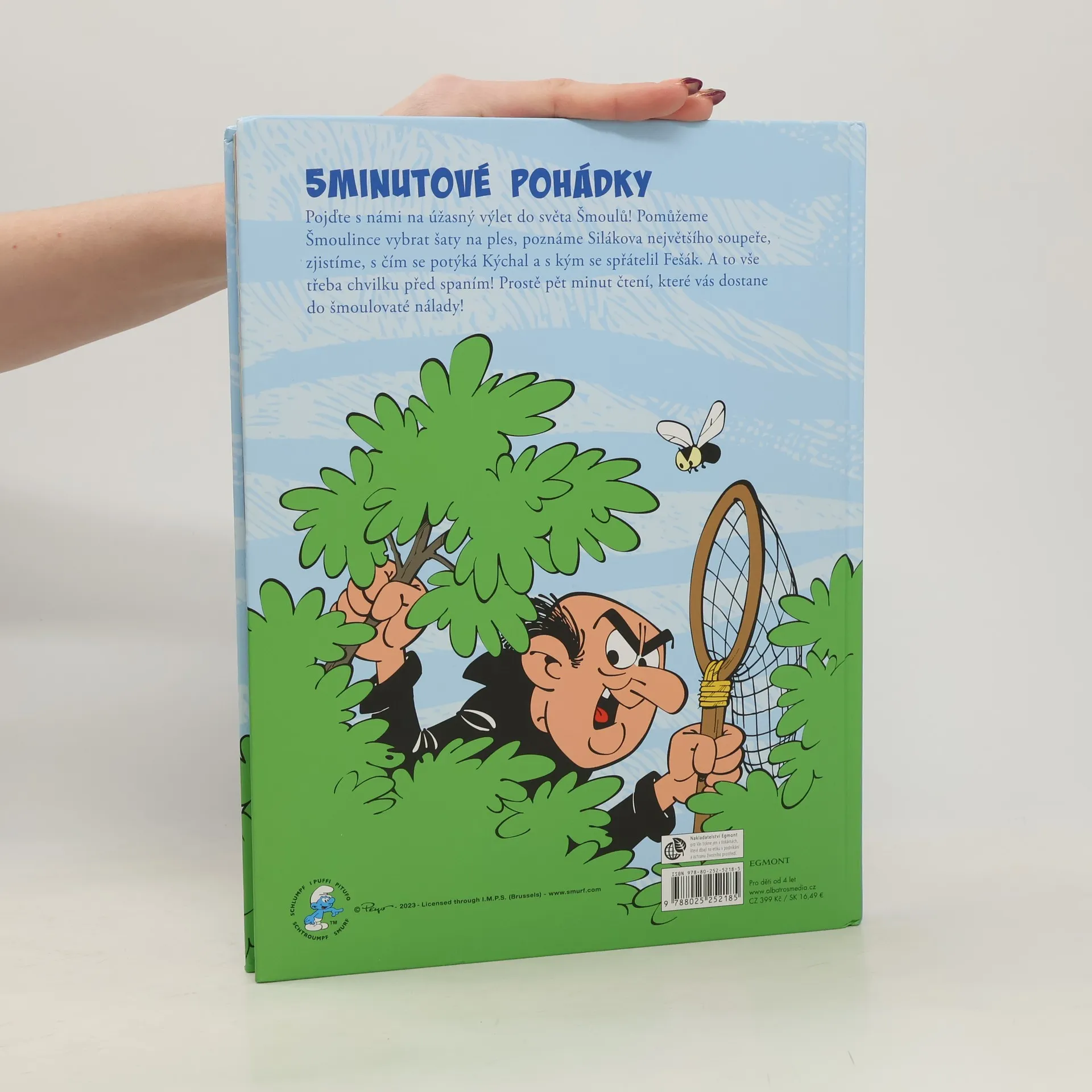 Spousta příběhů, po kterých se vám bude šmoulovatě usínat! Pojďte s námi na úžasný výlet do světa Šmoulů! Pomůžeme Šmoulince vybrat krásné šaty, poznáme Silákova největšího soupeře, zjistíme, s čím se potýká Kýchal a s kým se spřátelil Fešák. A to vše třeba chvilku před spaním! Prostě pět minut čtení, které vás dostane do šmoulovaté nálady!