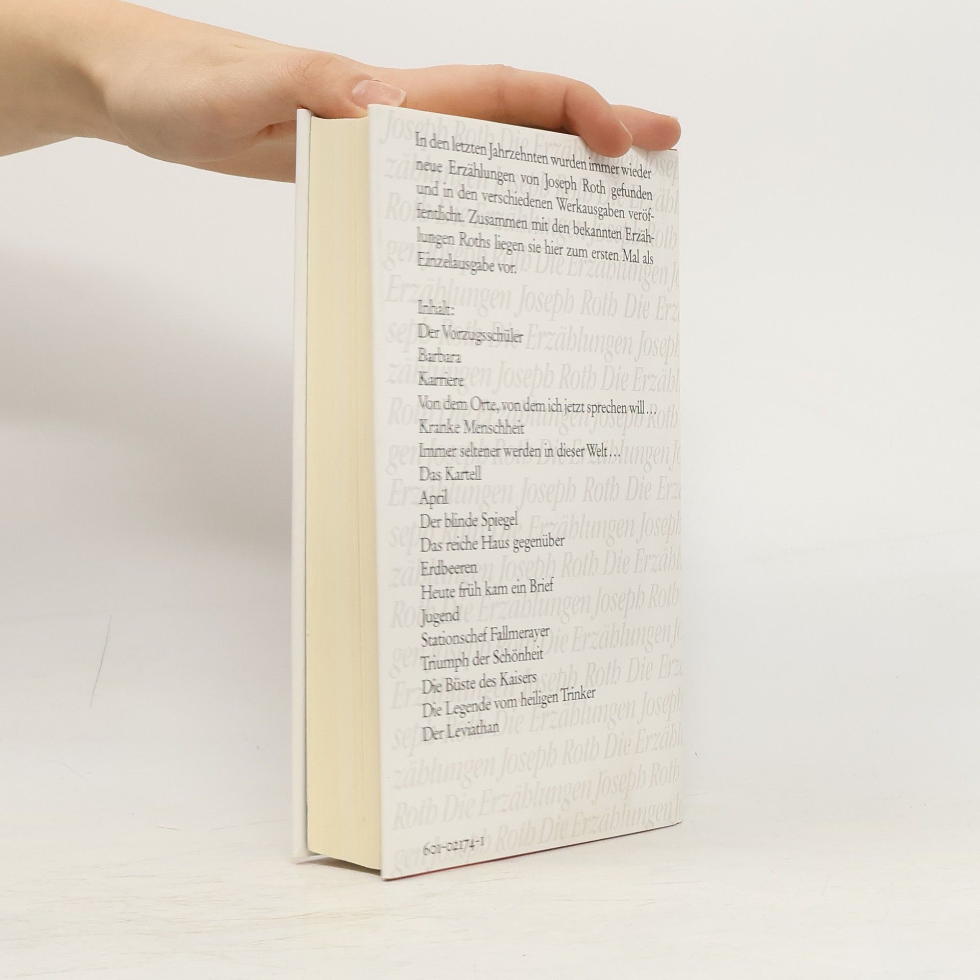 Joseph Roths scharfe Beobachtungsgabe und minutiöse Prosa, die seine Romane und Feuilletons auszeichnen, lassen sich auch in seinen kunstvollen Erzählungen bewundern. Der chronologische Aufbau der zwischen 1916 und 1939 entstandenen Erzählungen vermittelt ein genaues Bild von der literarischen Entwicklung Joseph Roths: Der Bogen seiner Erzählkunst spannt sich vom Frühwerk Der Vorzugsschüler über Die Legende vom heiligen Trinker , »eine der schönsten Legenden, die im 20. Jahrhundert gedichtet wurde« (Marcel Reich-Ranicki), zur Novelle Der Leviathan , Roths letzter gleichnishafter Erzählung vom Korallenhändler Nissen Pizenik. Joseph Roth erzählt lauter alltägliche Geschichten, bevölkert von lauter traurigen Figuren, die lauter unglückliche Schicksale haben. Wie er diese Verliebten und Sonderlinge, diese Schmuggler und Rittmeister, Huren und Eisenbahner, Briefträger und Lehrer mit leichter Hand in unvergessliche Figuren verwandelt, grenzt an Zauberei und ist doch nichts als große Literatur. Inhalt: - Der Vorzugsschüler (1916) - Barbara (1918) - Karriere (1920) - Von dem Orte, von dem ich jetzt sprechen will... (undat.) - Kranke Menschheit (undat.) - Immer seltener werden in dieser Welt... (undat.) - Das Kartell (1923) - April (1925) - Der blinde Spiegel (1925) - Das reiche Haus gegenüber , Novelle (1928) - Erdbeeren (1929) - Heute früh kam ein Brief... (undat.) - Jugend (undat.) - Stationschef Fallmerayer (1933) - Triumph der Schönheit , Novelle (1935) - Die Büste des Kaisers , Novelle (1935) - Die Legende vom heiligen Trinker , Novelle (1939) - Der Leviathan , Novelle (1940)