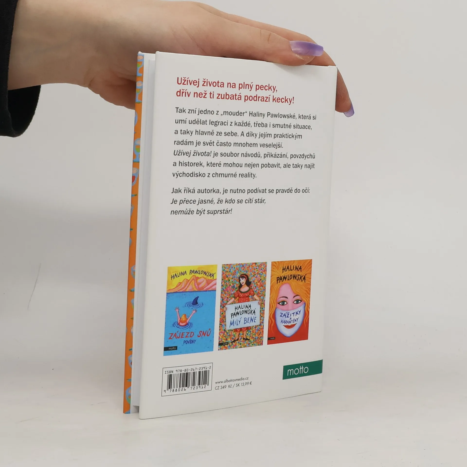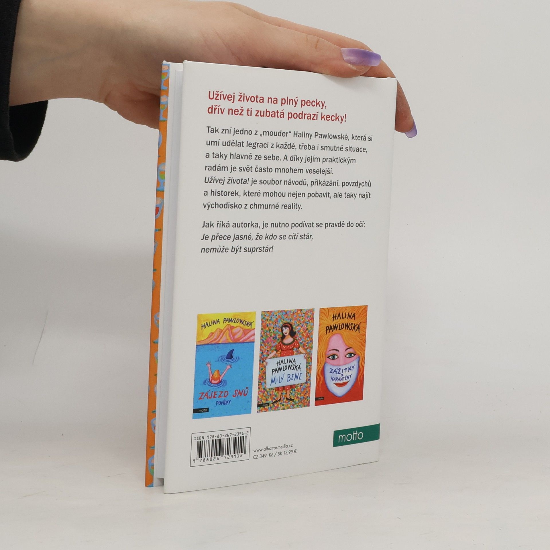 Užívej života na plný pecky, dřív než ti zubatá podrazí kecky!Tak zní jedno z pořekadel Haliny Pawlowské, která si umí udělat legraci z každé, třeba i smutné situace, a taky hlavně ze sebe. A díky jejím praktickým radám je svět často mnohem veselejší. Užívej života! je soubor návodů, přikázání, povzdychů a historek, které mohou nejen pobavit, ale taky najít východisko z chmurné reality. Jak říká autorka, je nutno podívat se pravdě do očí: Je přece jasné, že kdo je stár, nemůže být suprstár!