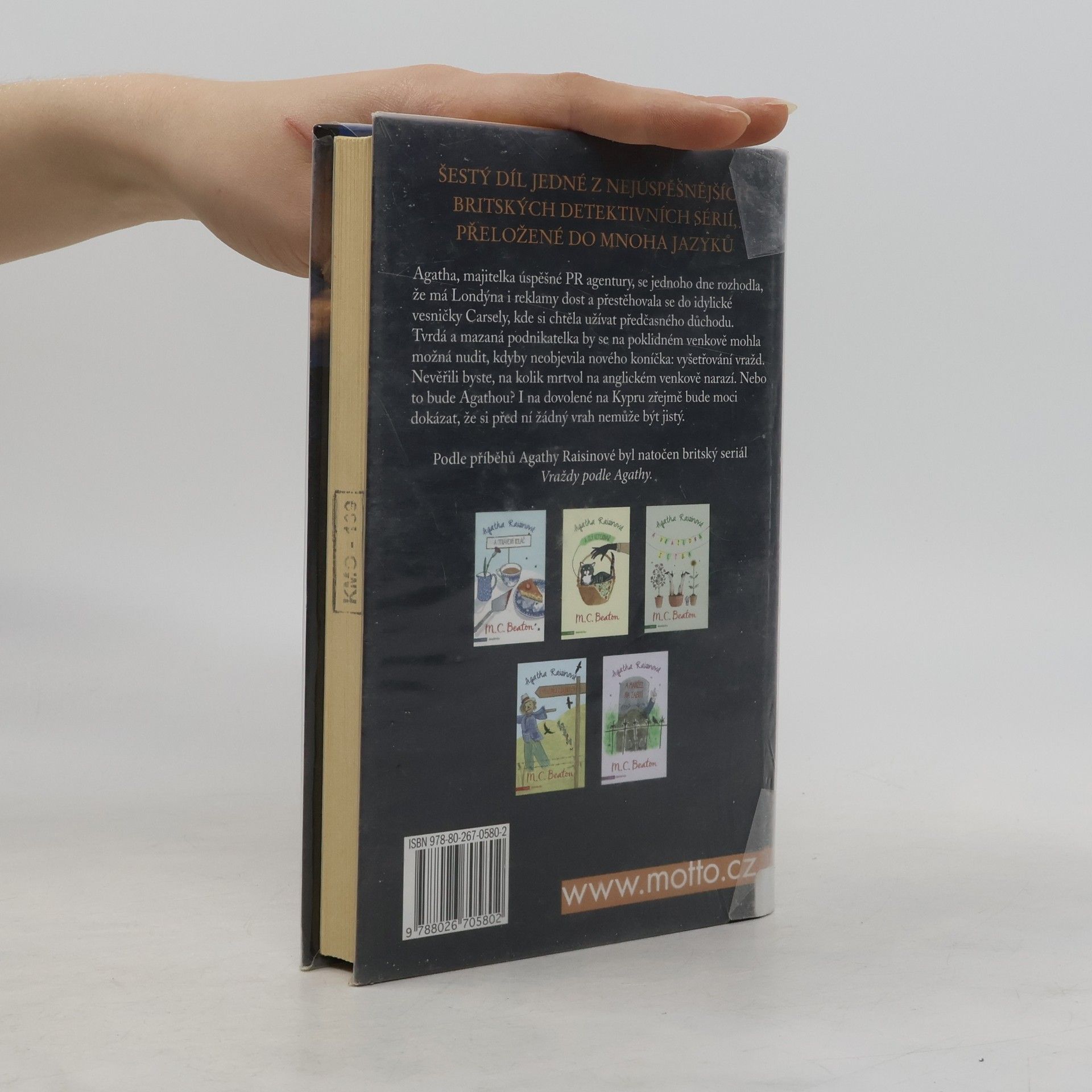 Agatha, majitelka úspěšné PR agentury, se jednoho dne rozhodla, že má Londýna i  reklamy dost, a  přestěhovala se do  idylické vesničky Carsely, kde si chtěla užívat předčasného důchodu. Tvrdá a mazaná podnikatelka by se na  poklidném venkově mohla možná nudit, kdyby neobjevila nového koníčka: vyšetřování vražd. Nevěřili byste, na  kolik mrtvol na anglickém venkově narazí. Nebo to bude Agathou? I na dovolené na Kypru zřejmě bude moci dokázat, že si před ní žádný vrah nemůže být jistý.