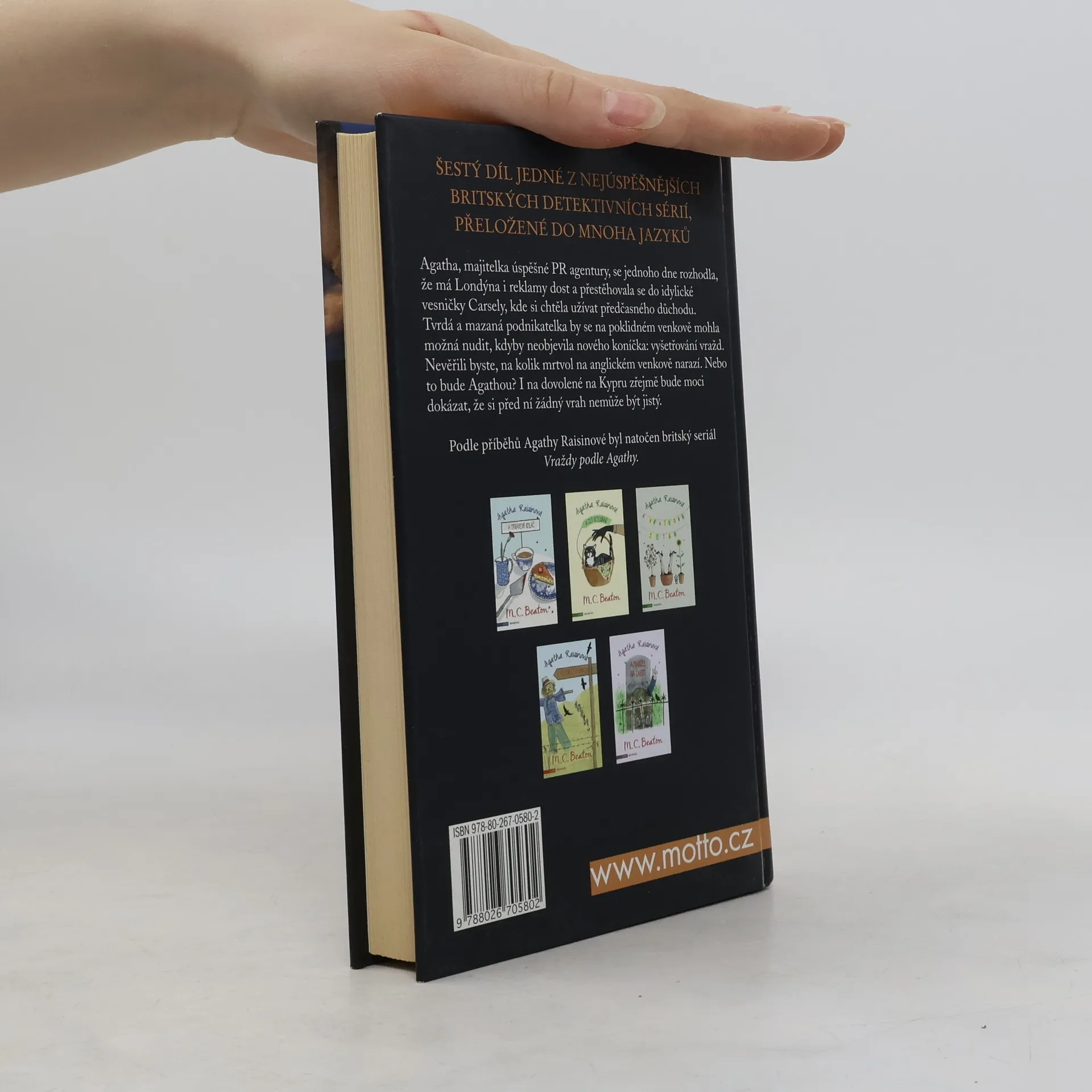 Agatha, majitelka úspěšné PR agentury, se jednoho dne rozhodla, že má Londýna i reklamy dost, a přestěhovala se do idylické vesničky Carsely, kde si chtěla užívat předčasného důchodu. Tvrdá a mazaná podnikatelka by se na poklidném venkově mohla možná nudit, kdyby neobjevila nového koníčka: vyšetřování vražd. Nevěřili byste, na kolik mrtvol na anglickém venkově narazí. Nebo to bude Agathou? I na dovolené na Kypru zřejmě bude moci dokázat, že si před ní žádný vrah nemůže být jistý.