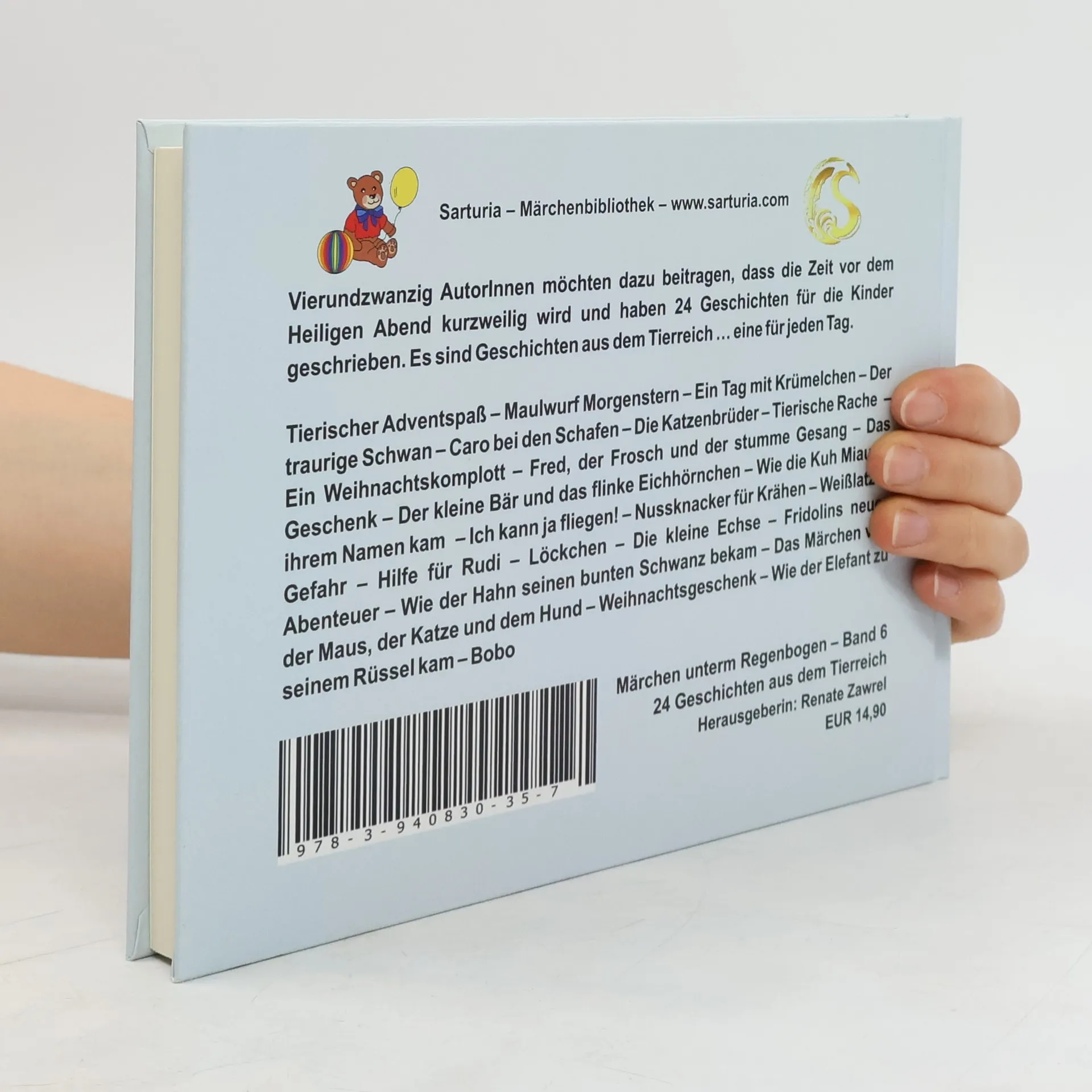 Ein Märchenbuch für die Adventszeit mit vierundzwanzig Geschichten von verschiedenen Autoren, die die Wartezeit auf Weihnachten verkürzen. Es enthält Rätsel, Bastelanleitungen und Ausmalbilder sowie ein Märchenquartett. Die Geschichten aus dem Tierreich sind ganzjährig für Kinder geeignet und bieten viel Freude.