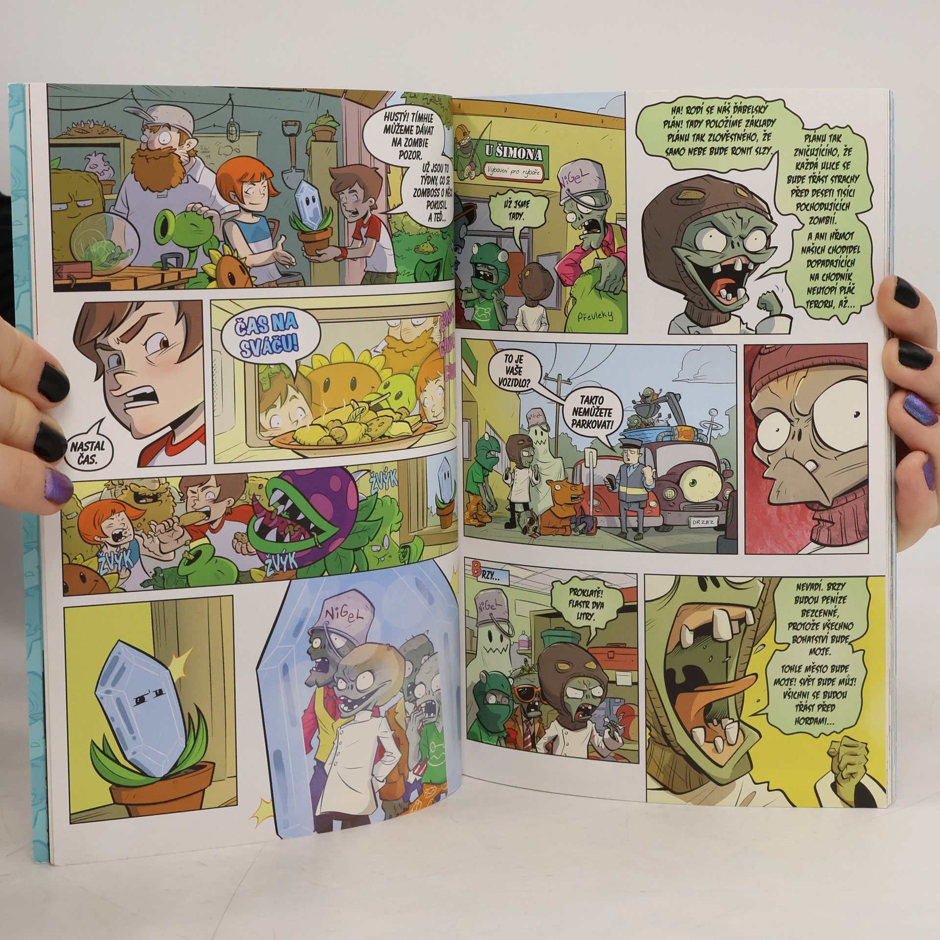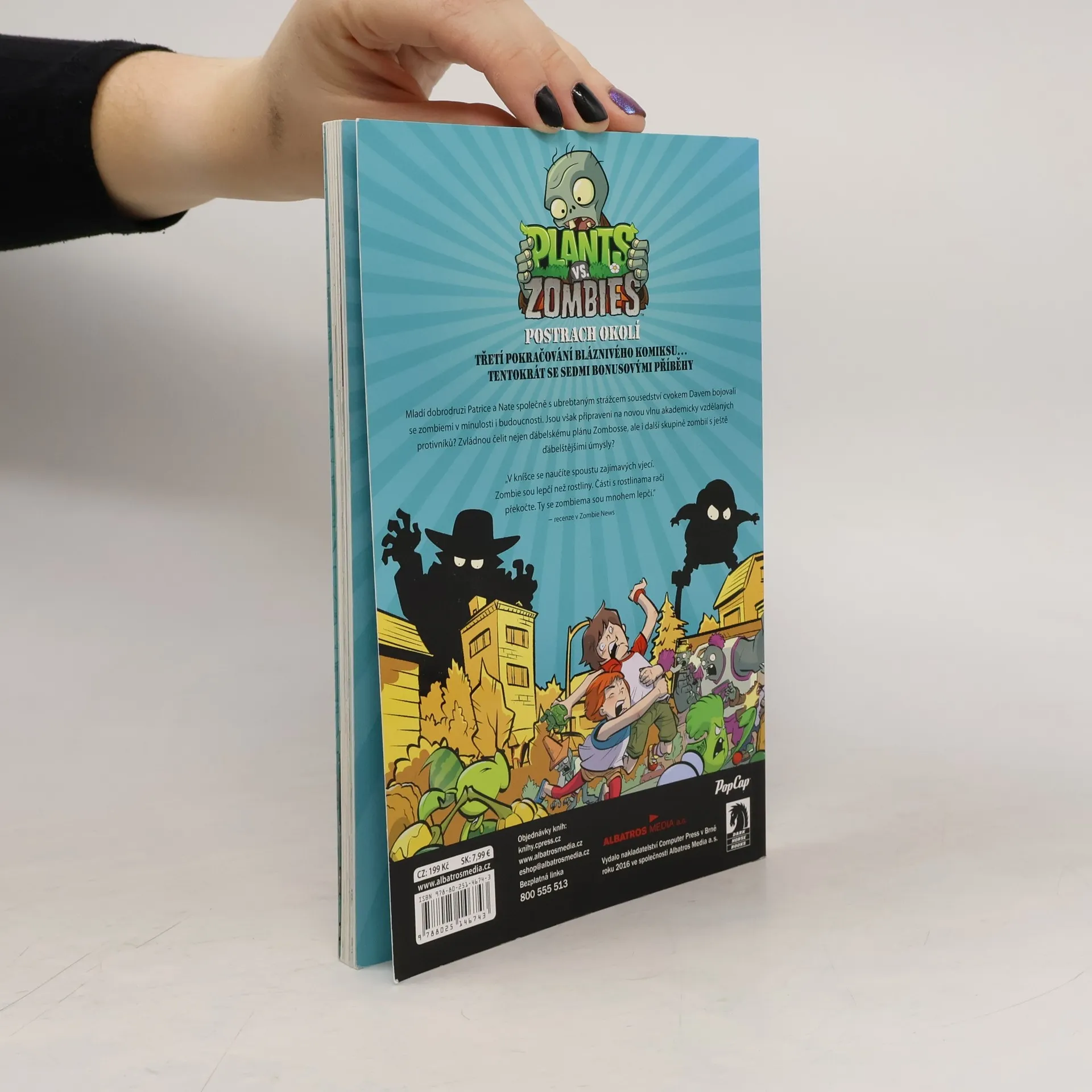 Mladí dobrodruzi Patrice a Nate společně s ubrebtaným strážcem sousedství cvokem Davem bojovali se zombiemi v minulosti i budoucnosti. Jsou však připraveni na novou vlnu akademicky vzdělaných protivníků? Zvládnou čelit nejen ďábelskému plánu Zombosse, ale i další skupině zombií s ještě ďábelštějšími úmysly? Bláznivá jízda pokračuje i ve třetím komiksu Plants vs. Zombies, tentokrát se sedmi bonusovými příběhy.