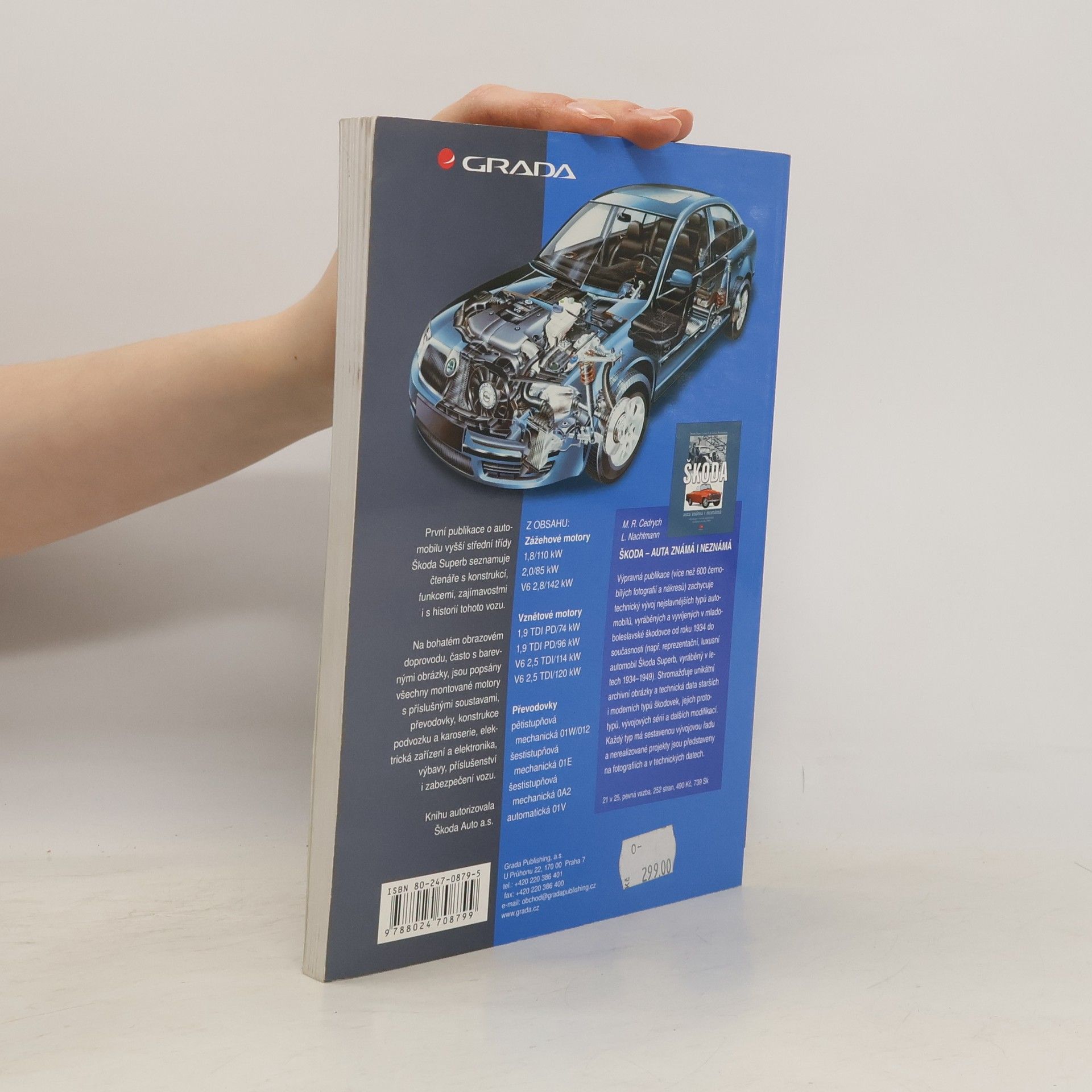 První publikace o automobilu vyšší střední třídy Škoda Superb seznamuje čtenáře s konstrukcí, funkcemi, zajímavostmi i s historií tohoto vozu. Na bohatém obrazovém doprovodu, často s barevnými obrázky, jsou popsány a vysvětleny všechny osazované motory s příslušnými soustavami (zážehové: 1,8/110 kW, 2,0/85 kW, 2,8/140 a 142 kW; vznětové: 1,9/74 kW, 1,9/96 kW, 2,5/114 kW, 2,5/120 kW), převodovky (5stupňová, 6stupňová a automoatická), konstrukce podvozku, karoserie, výbavy, příslušenství i zabezpečení vozu. Autorizovala Škoda a.s.