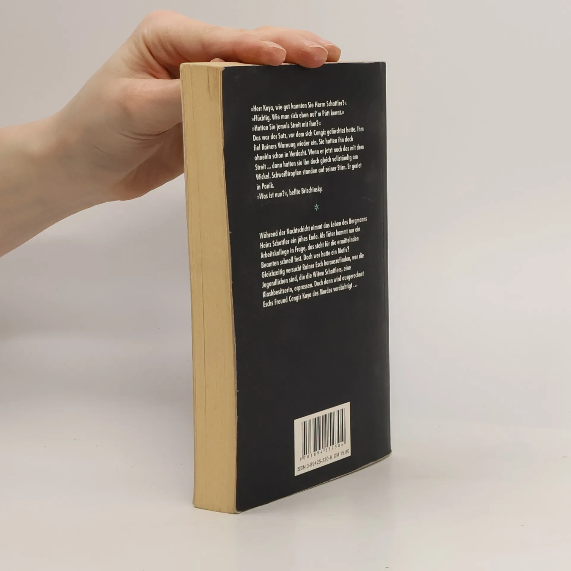 Während der Nachtschicht nimmt das Leben des Bergmanns Heinz Schattler ein jähes Ende. Als Täter kommt nur ein Arbeitskollege in Frage, das steht für die ermittelnden Beamten schnell fest. Doch wer hatte ein Motiv? Gleichzeitig versucht Rainer Esch herauszufinden, wer die Jugendlichen sind, die die Witwe Schallers, eine Kioskbesitzerin, erpressen. Doch dann wird ausgerechnet Eschs Freund Cengiz Kaya des Mordes verdächtigt ... 1. Band der Rainer Esch-Reihe