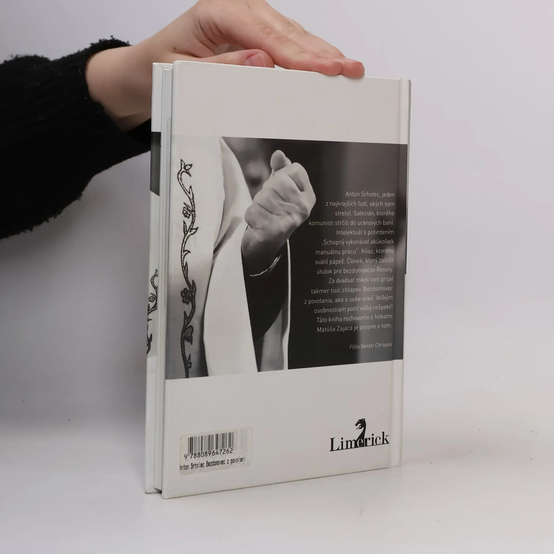 Kniha rozhovorov a fotografií. Kniha rozhovorov Anton Srholec - Bezdomovec z povolania je kniha o láske, odpúšťaní, viere, nezlomnosti, slobode a radosti. Vznikala vyše dvoch rokov. Autorom rozhovorov s charizmatickým kňazom, ktorý sa stará o bezdomovcov je spisovateľ, hudobník a publicista Pišta Vandal Chrappa. Autorom fotografií je fenomenálny Matúš Zajac. Kniha má dvadsaťjeden kapitol. Pišta Vandal sa s Antonom Srholcom rozprával o pokušeniach, ktoré dáva moc, o duchovnom povolaní a úskaliach kňazstva, o živote v lágri, o besoch komunizmu, o strachu, o nádeji i beznádeji, o pravde, slobode, o živote i smrti. Fotografie Matúša Zajaca zachytávajú intimitu každodennosti Antona Srholca. Zameriavajú sa hlavne na jeho kňazstvo a prácu s bezdomovcami.