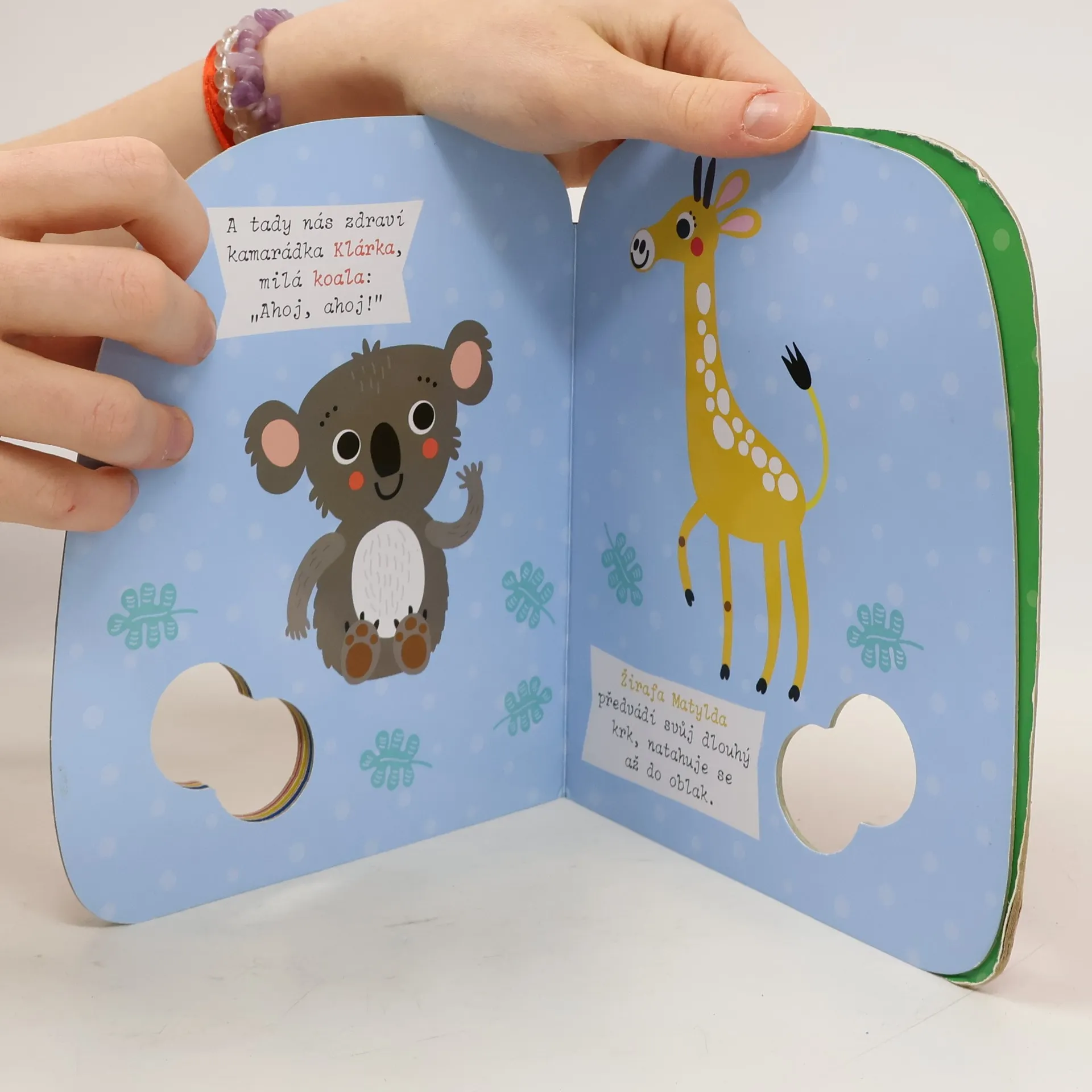 Vydejte se do ZOO v této krásné pestré knížce s otvorem určeným pro dětské prstíky. Podívejte se, co naši kamarádi ze ZOO rádi dělají.