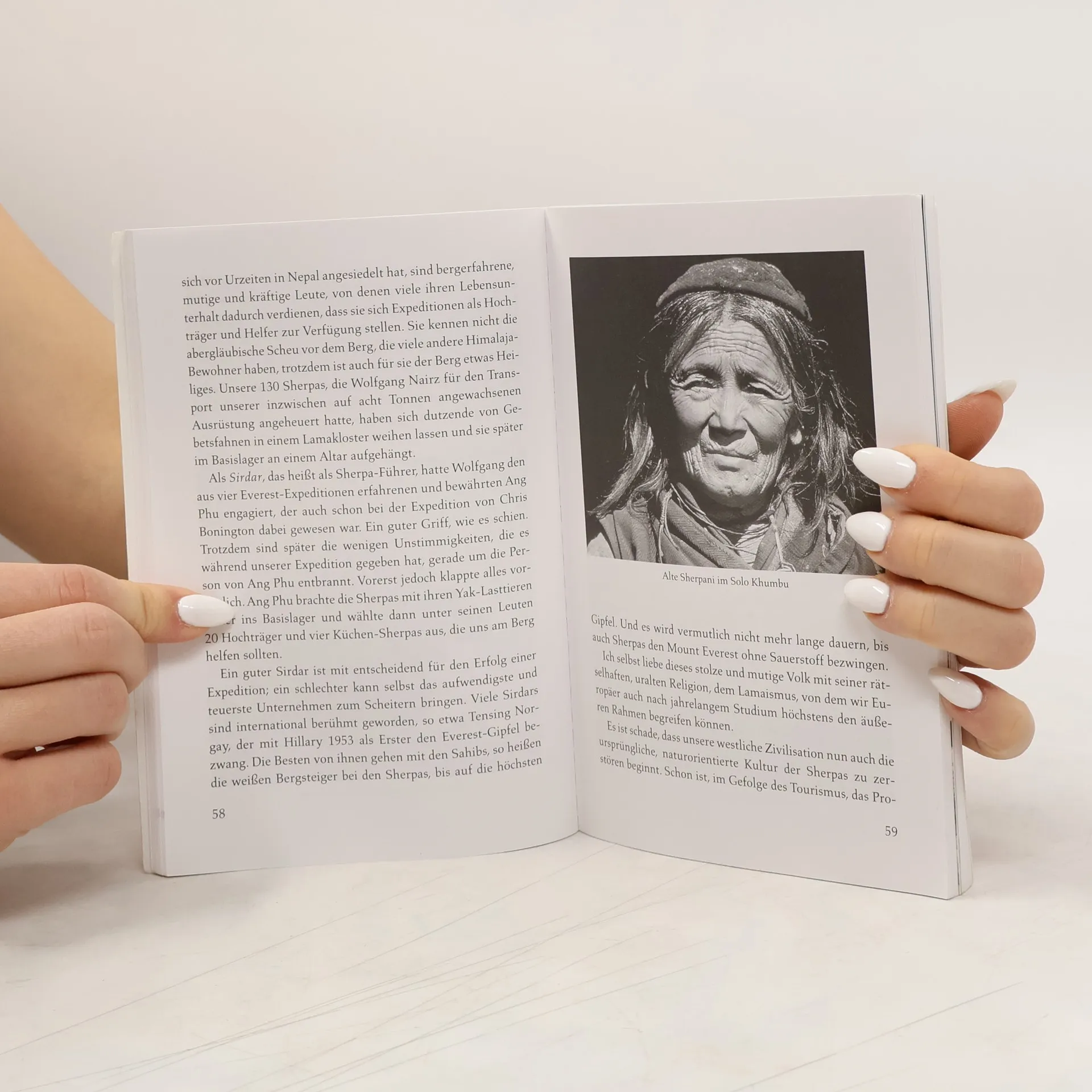 Peter Habeler schildert sein Abenteuer beim Gipfelsturm, einschließlich Vorbereitung, Training und der speziellen alpinen Technik. Er beschreibt den Weg zum Basislager, die Herausforderungen in den Höhen und die emotionale Achterbahn bis zum Erfolg. Der Fokus liegt auf seinen inneren Kämpfen und dem Sieg über sich selbst.