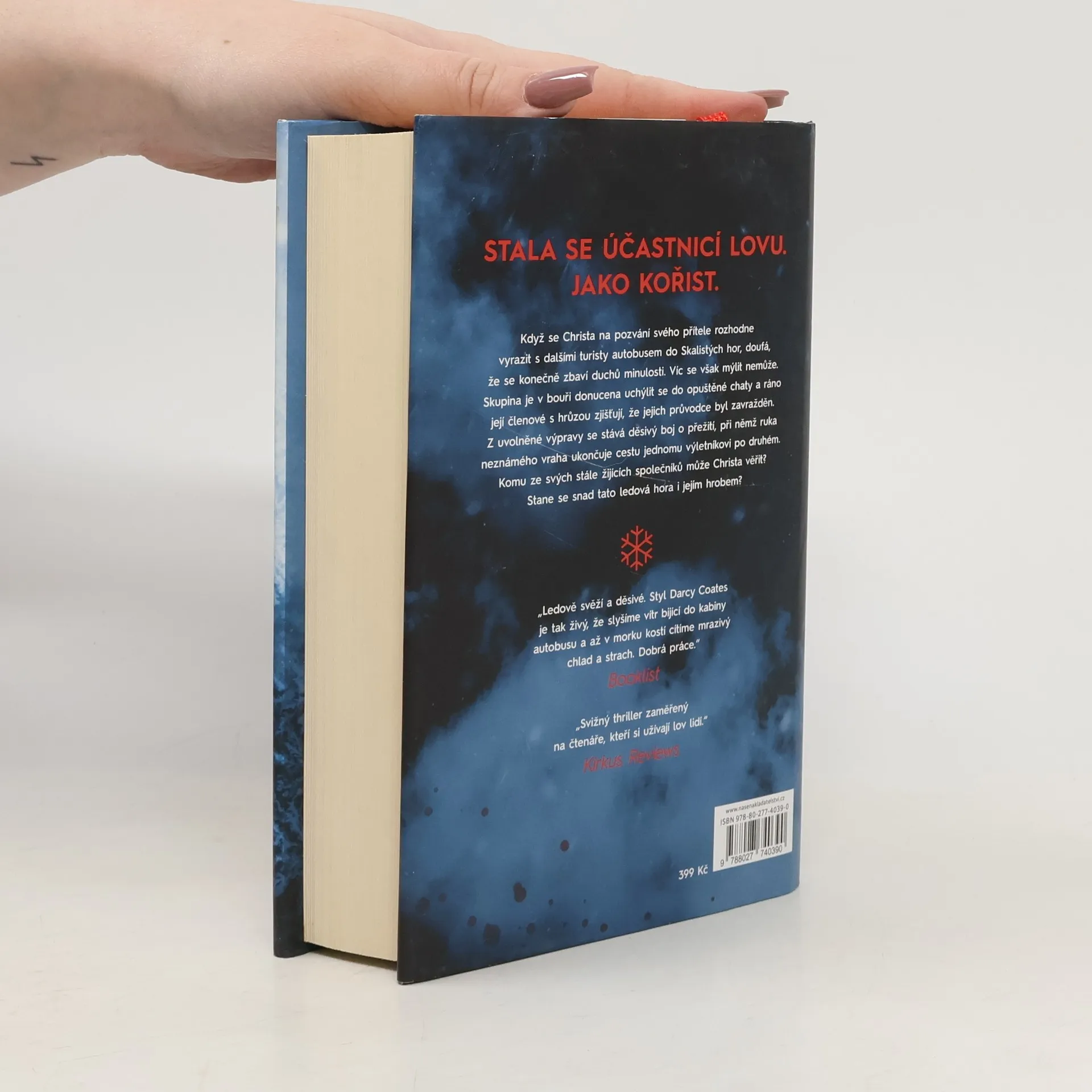Christa se snaží vzpamatovat z traumatu, které před dvěma lety rozmetalo její spokojený život na kousky, a zdá se, že je na nejlepší cestě k uzdravení. Našla si báječného přítele a nyní vedle něj sedí v autobuse a spolu s dalšími výletníky míří hluboko do hor, kde mají strávit čtrnáct dní v luxusním hotelu. Christa navíc doufá, že ji Kiernan požádá o ruku. Zatímco autobus stoupá po úzkých horských silničkách stále výš, modrá obloha se potáhne mraky a přiblíží se bouře. Padlý kmen přes cestu je přinutí zastavit a vánice a mráz je vyžene hledat bezpečnější úkryt. Naštěstí se mohou uchýlit do nedaleké opuštěné lovecké chaty. Když se ráno s nadějí na pokračování v cestě probudí, zjistí, že jejich průvodce chybí. A jeho hlava visí nabodnutá na stromě před chatou. Z bezstarostné dovolené se stává boj o přežití. Z osmi výletníků zůstane sedm, pak šest, pak pět… zachrání se alespoň někdo? A je vrahem jeden z nich, nebo někdo úplně cizí?