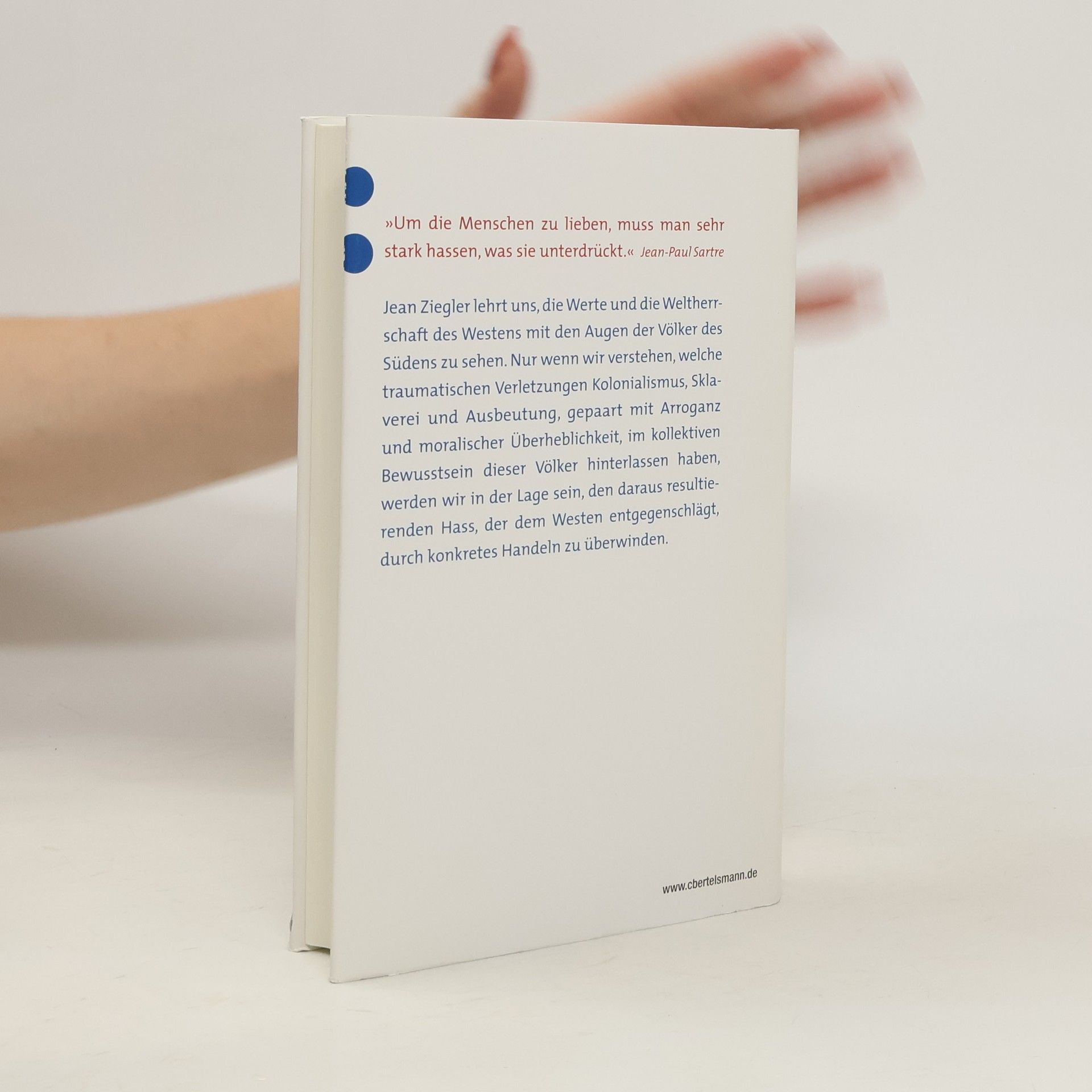 'Jean Ziegler wird mit diesem Preis für sein Engagement für die am stärksten ausgebeuteten Menschen auf diesem Planeten geehrt.' Die Begründung für die Verleihung des Literaturpreises für Menschenrechte für 'Der Hass auf den Westen' Er gilt als scharfzüngiger Globalisierungskritiker, als 'Stimme der Armen und Schrecken der Mächtigen' (so der Stern): Jean Ziegler ist einer der letzten zornigen Linken, der unermüdlich Elend, Unterdrückung, Menschenverachtung und die Arroganz der Reichen als Resultat eines global agierenden Kapitalismus und einer 'mörderischen Weltordnung' anprangert. In seinem neuen Buch, für das er Ende 2008 mit dem Literaturpreis für Menschenrechte ausgezeichnet wurde, diagnostiziert er wachsenden Hass der Armen und Entrechteten auf den Westen. Dessen Nährboden sind gegenseitiges Unverständnis sowie das Bewusstsein jahrhundertelanger Verachtung und Unterdrückung- mit weit reichenden Folgen für globale Friedenspolitik. Jean Ziegler ist Mitglied des UN-Menschenrechtsrates und einer der international bekanntesten Globalisierungskritiker.