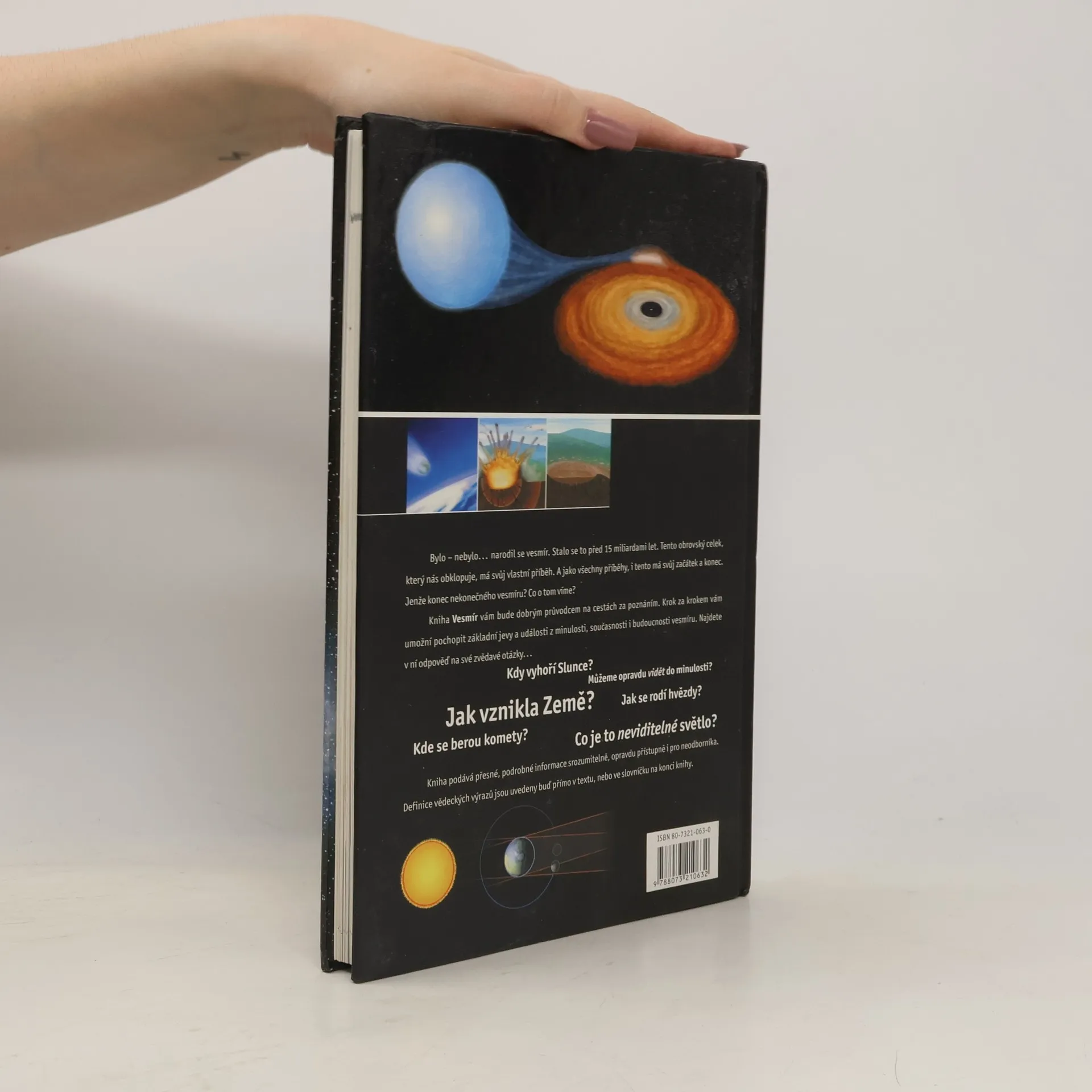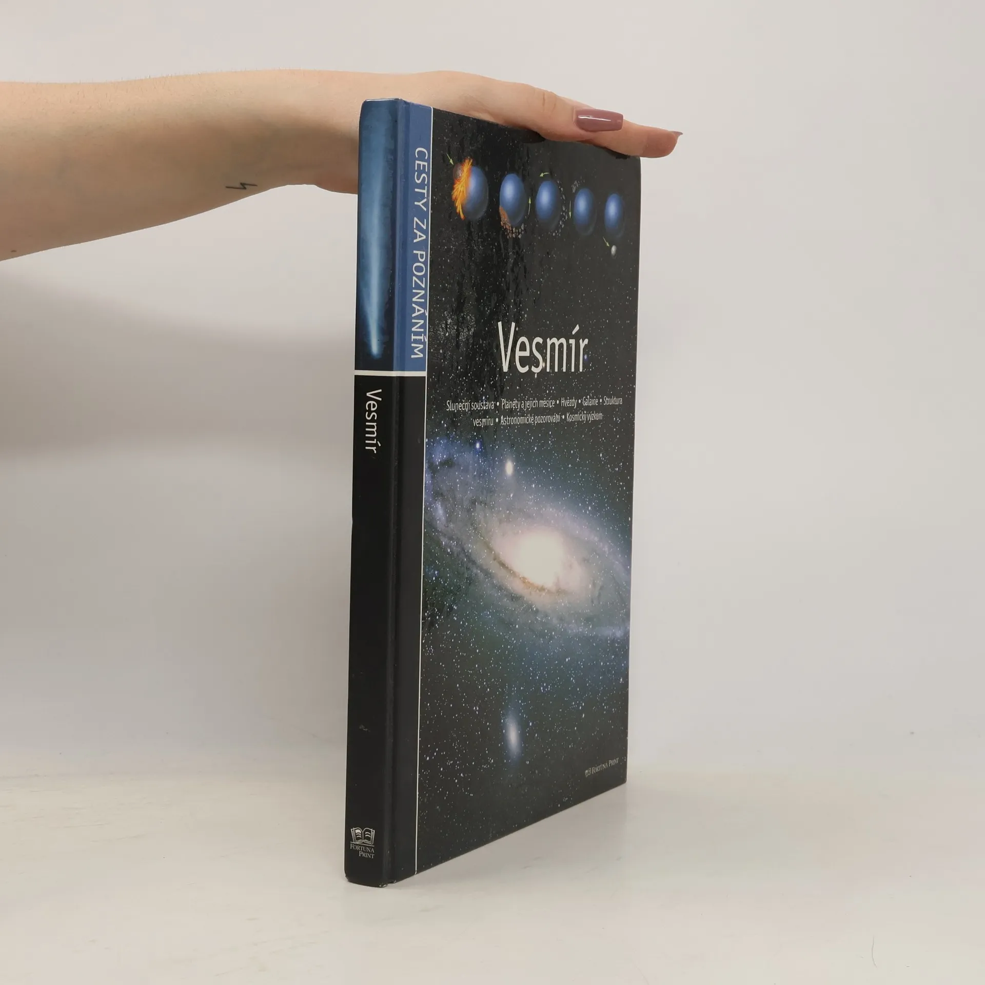 Sluneční soustava, planety a jejich měsíce, hvězdy a galaxie, struktura vesmíru, astronomické pozorování, Kosmický výzkum. Vyšlo v edici Cesty poznání.