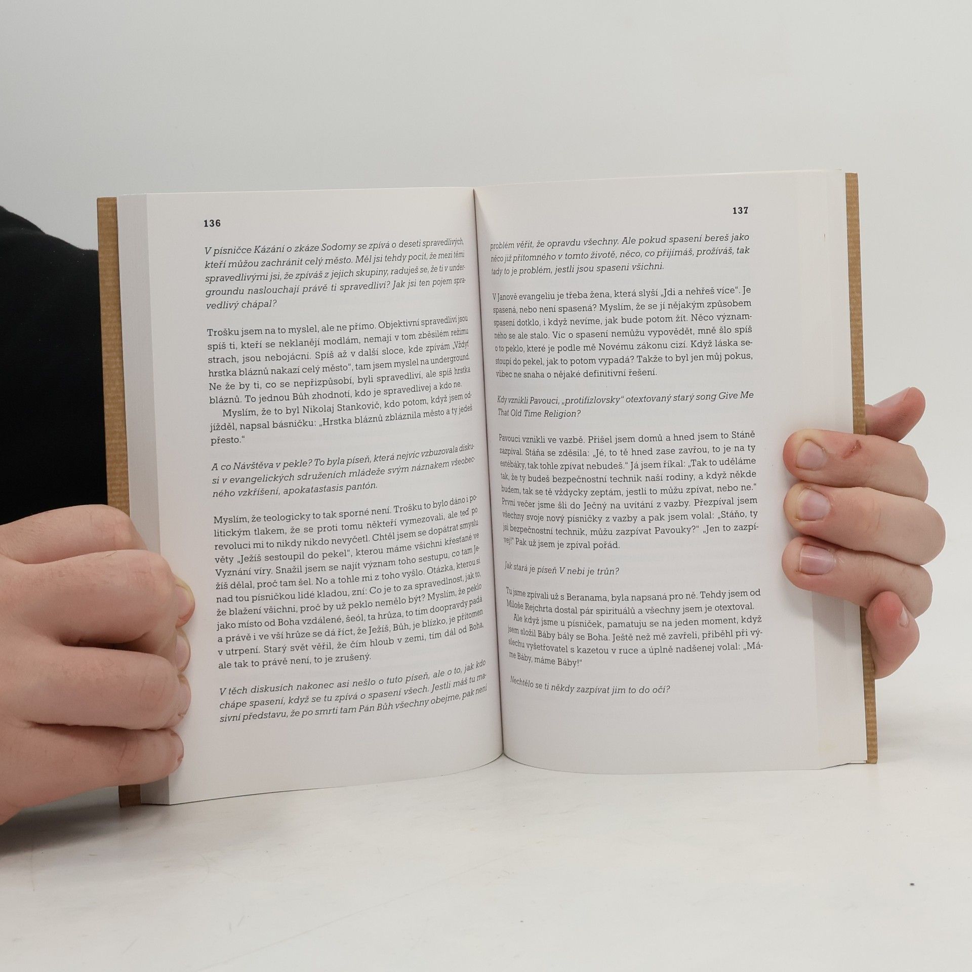 "Nikde jinde jsem nenašel tak výmluvné, chápavé, neexhibující svědectví o undergroundu 60. a 70. let jako v Karáskově vyprávění naplněném lidskostí," napsal Vladimír Karfík. Knížka rozhovorů, které s farářem, básníkem a písničkářem S. Karáskem vedli Š. Hájek a M. Plzák, vyšla v krátké době již potřetí. Text provází padesát unikátních fotografií. Ukázka: PROLOG Ve čtrnácti letech jsem opustil teplo domova. Psal se rok 1956 a já se ocitl v Děčíně ve školním internátě, vedeném v bolševicko-vojenském duchu. Po dvou měsících jsem dostal první vycházku. Zašel jsem do hospody Na střeláku, kde se scházeli námořníci, šífáci, takové tvrdé jádro. Jeden starší chlápek hrál na jakousi citeru a k tomu krásně zpíval a ostatní se přidávali. V jednu chvíli celá hospoda zpívala na plné pecky: "Proč život dává tak málo lásky nám..." Sledoval jsem to jako u vytržení. Vnitřně jsem plně přitakal: Ano, je to tak, život nám dává málo lásky, ale i málo radosti a pohody. Ale proč? Proč vlastně? Vyšel jsem z hostince zpět do smutné reality a ta píseň mi stále zněla a dodnes zní v uších, i hloub. Tehdy jsem si poprvé uvědomil: S tím se musí něco dělat. Ale hned jsem se opravil: S tím musím něco dělat. - Vzal jsem to za své a už se neptám "proč život dává tak málo lásky nám", ale ždímu ho, aby dal víc. Soustředil jsem se na to, a hle - on dává.