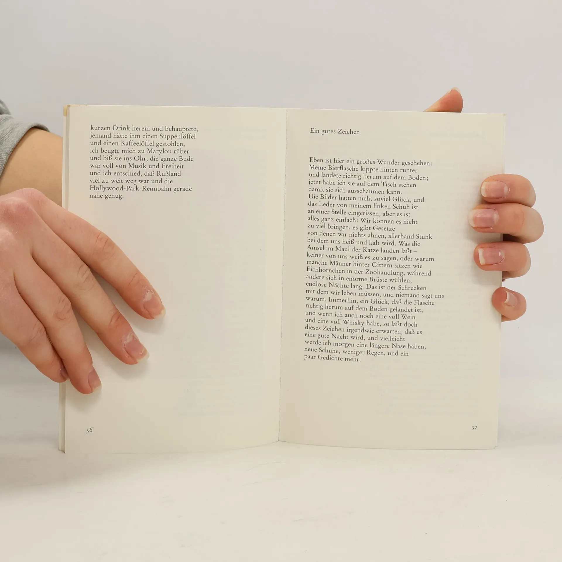 Bukowskis Gedichte handeln von Selbstmördern, Verlierern und dem rauen Leben. Sie sind treffend, amüsant und berührend, was selbst zartbesaitete Leser anzieht. Janosch hat diese Gedichte offenherzig illustriert.