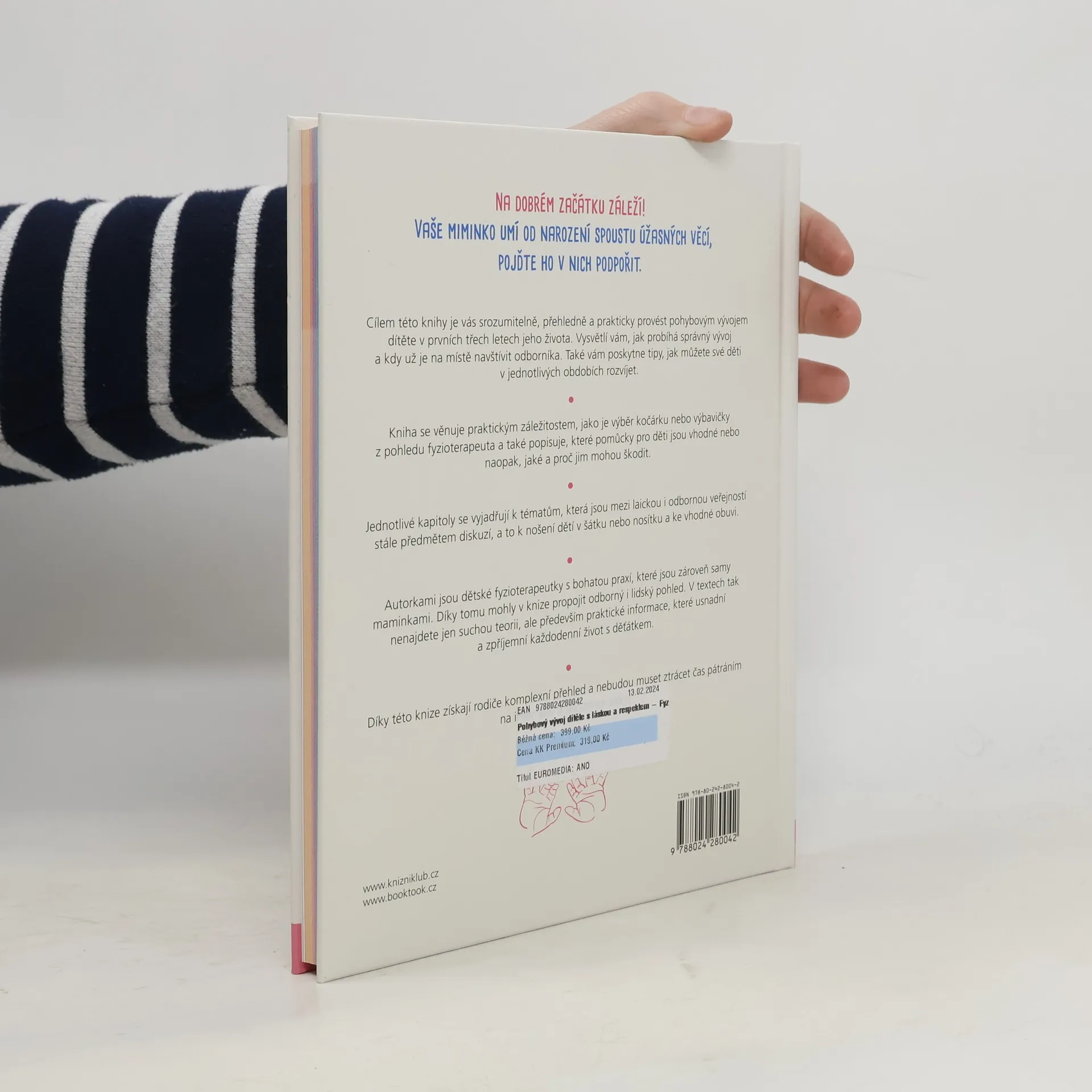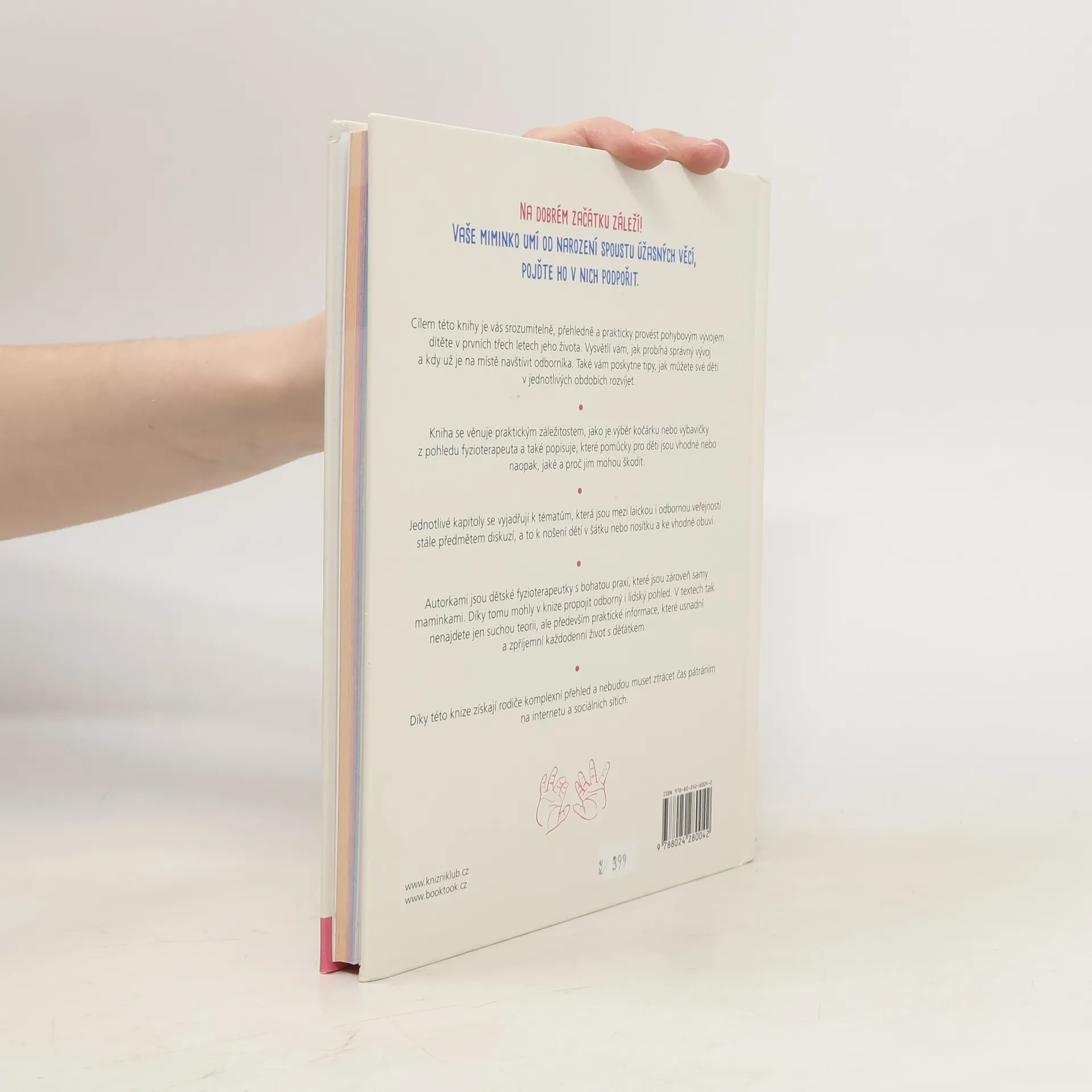Na dobrém začátku záleží! Cílem této knihy, sepsané dvěma fyzioterapeutkami a zároveň maminkami malých dětí, je srozumitelně, přehledně a prakticky provést rodiče pohybovým vývojem jejich děťátka v prvních třech letech života. Vysvětluje, co je dobré sledovat a proč, kdy už je vhodné navštívit odborníka, i to, jak mohou rodiče své děti v jednotlivých obdobích rozvíjet. Publikace zároveň usnadňuje orientaci v často nepřeberném množství dětských pomůcek, které dnešní trh nabízí, včetně pomoci s výběrem správného kočárku či nosítka a později i vhodné obuvi.