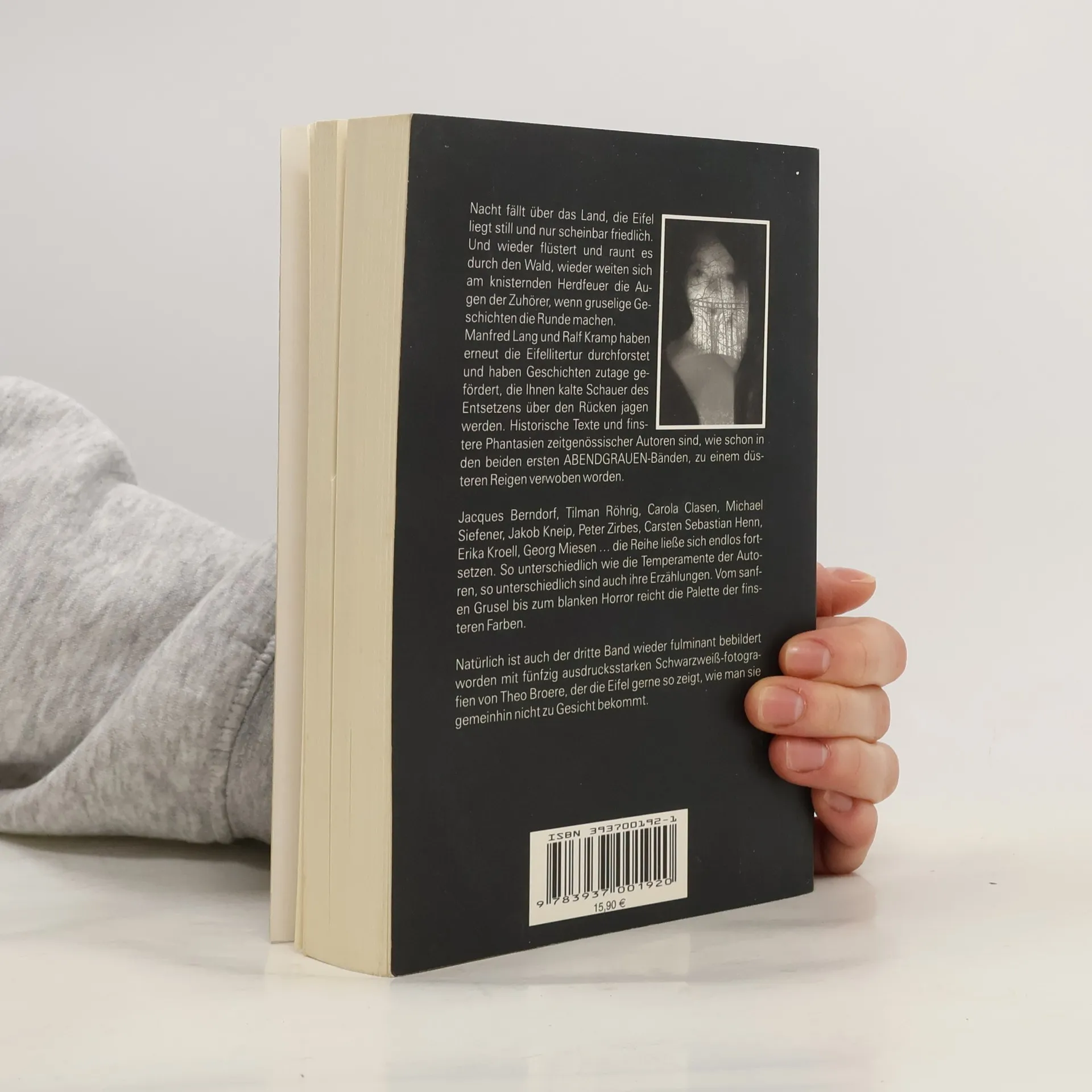 In der stillen Eifel entfalten sich gruselige Geschichten, die Manfred Lang und Ralf Kramp aus der Eifelliteratur gesammelt haben. Der dritte Band der ABENDGRAUEN-Reihe vereint historische Texte und zeitgenössische Erzählungen, vom sanften Grusel bis zum blanken Horror. Fünfzig eindrucksvolle Schwarzweißfotografien von Theo Broere ergänzen die Geschichten.