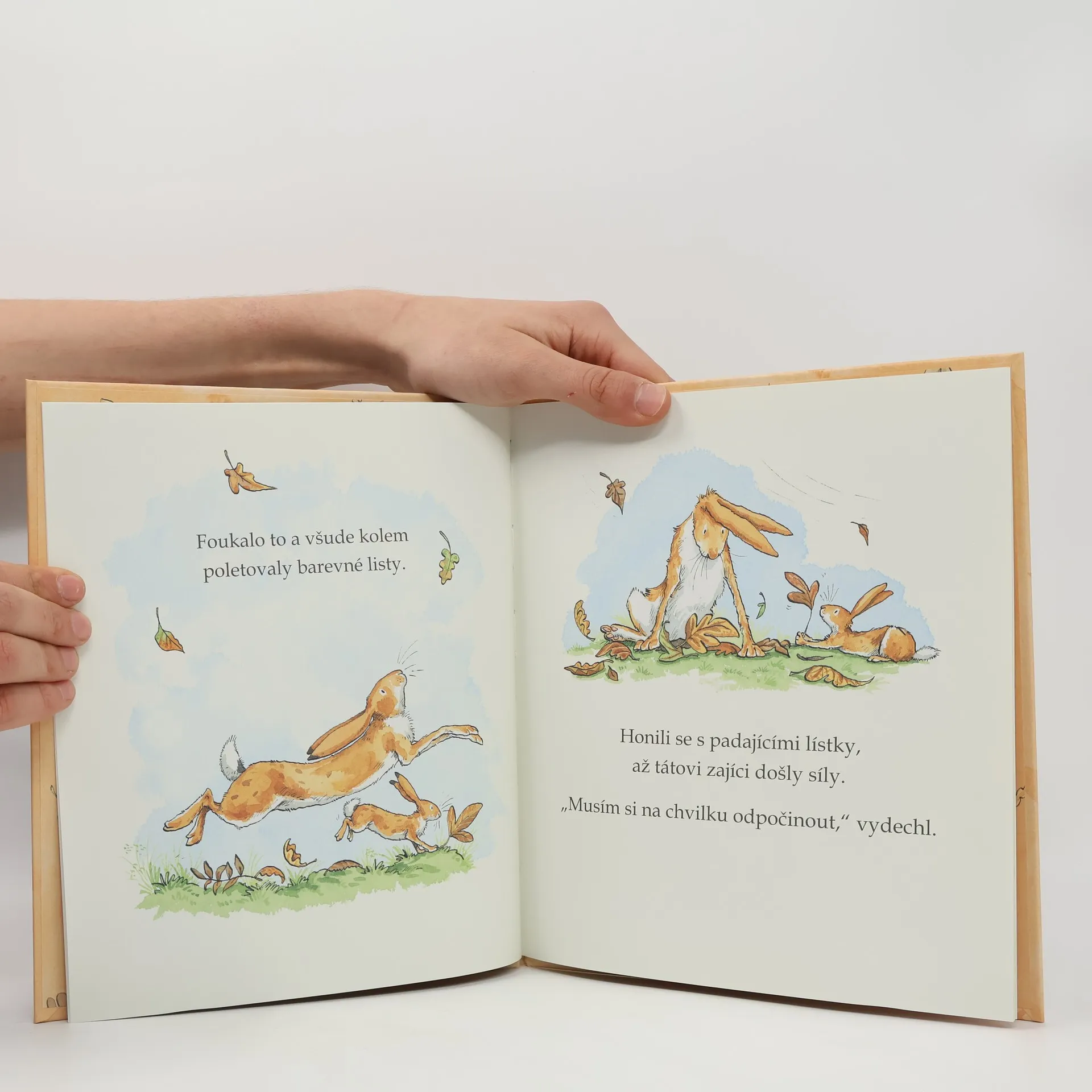 Je podzim. Zajíček a tatínek vyběhli do krásného dne. Vtom jim vítr přinese překvapení... Jak to dopadne? Okouzlující příběh, krásné ilustrace.