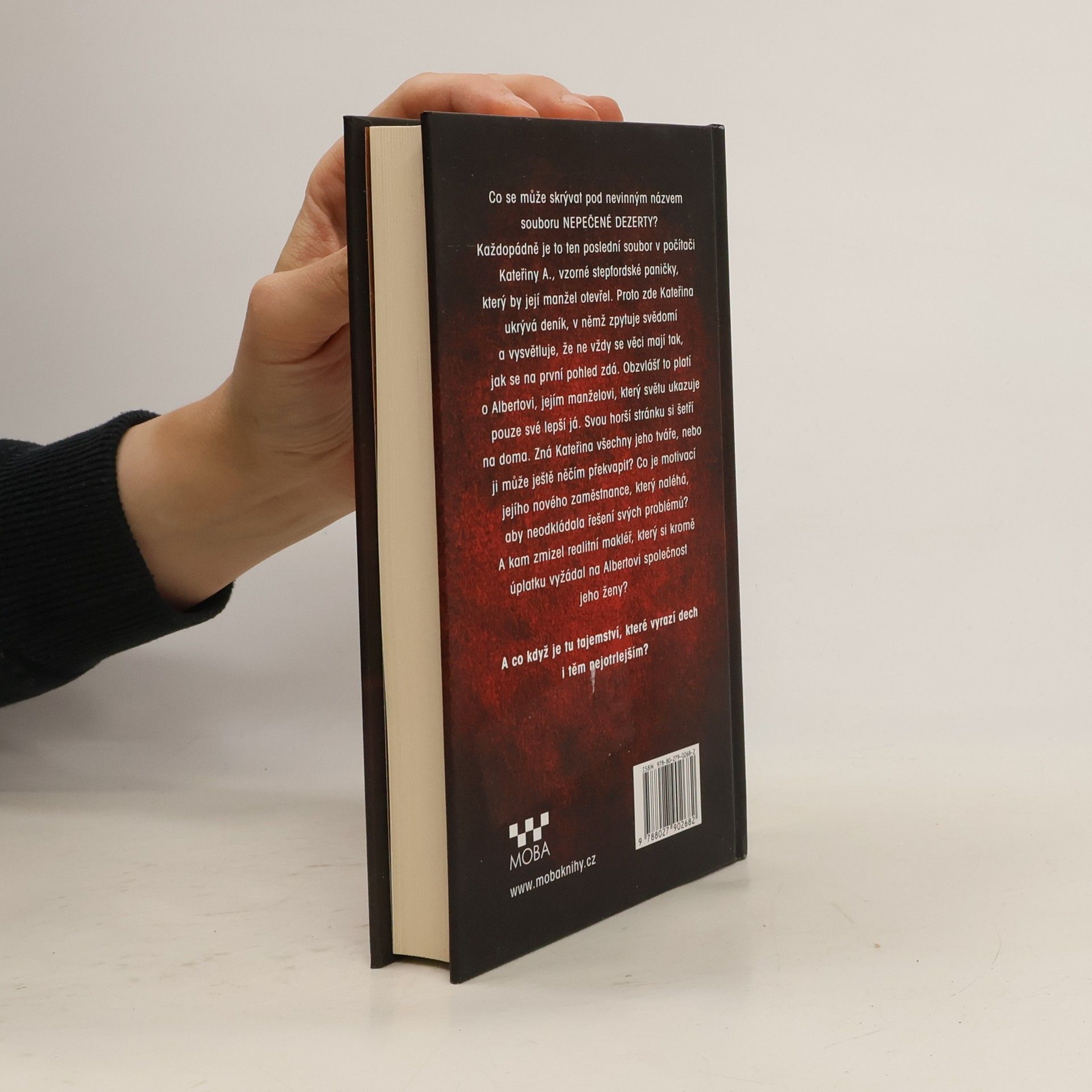 Co se může skrývat pod nevinným názvem souboru Nepečené dezerty? Každopádně je to ten poslední soubor v počítači Kateřiny A., vzorné stepfordské paničky, který by její manžel otevřel. Proto zde Kateřina ukrývá deník, v němž zpytuje svědomí a vysvětluje, že ne vždy se věci mají tak, jak se na první pohled zdá. Obzvlášť to platí o Albertovi, jejím manželovi, který světu ukazuje pouze své lepší já. Svou horší stránku si šetří na doma. Zná Kateřina všechny jeho tváře, nebo ji může ještě něčím překvapit? Co je motivací jejího nového zaměstnance, který naléhá, aby neodkládala řešení svých problémů? A kam zmizel realitní makléř, který si kromě úplatku vyžádal na Albertovi společnost jeho ženy? A co když je tu tajemství, které vyrazí dech i těm nejotrlejším?