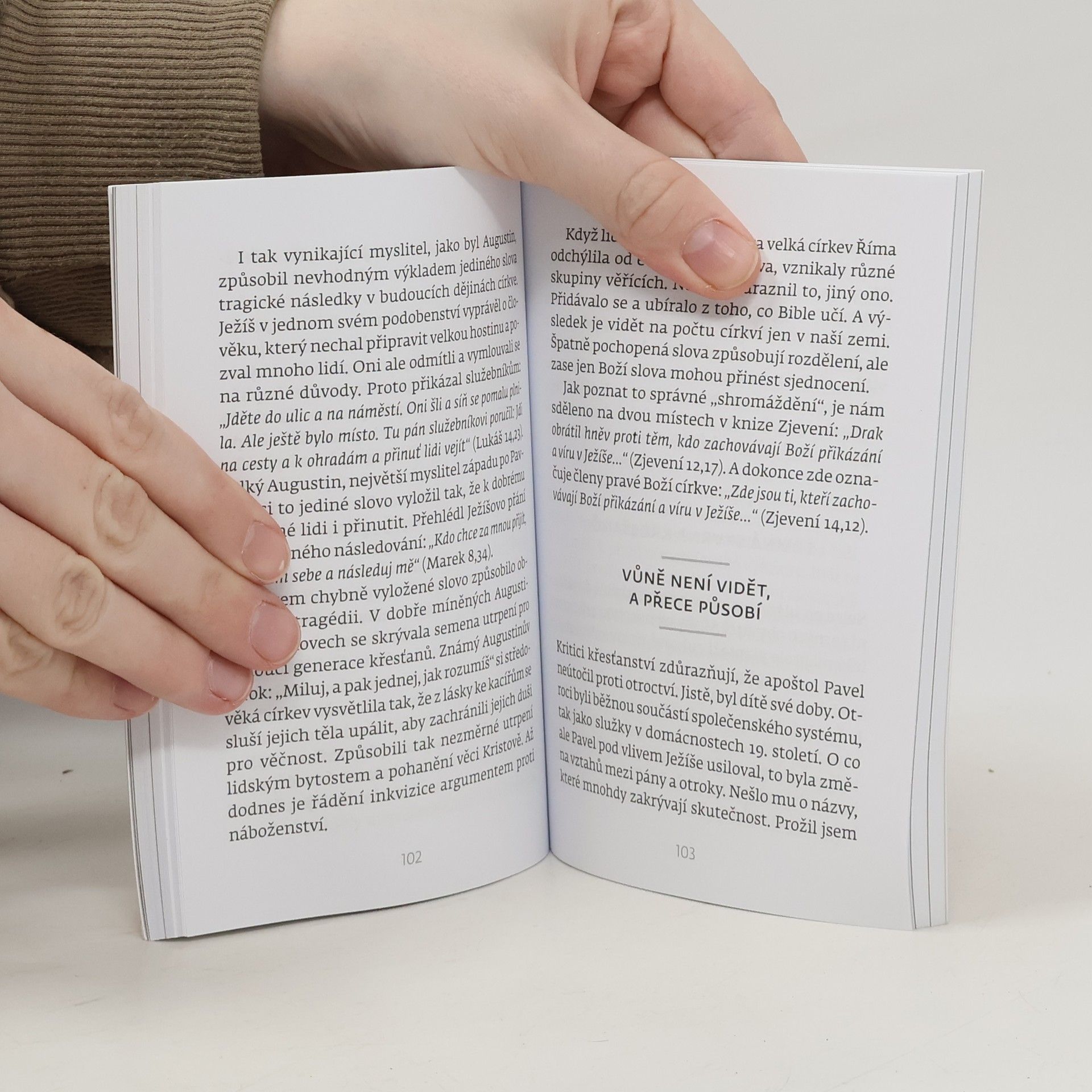 Autor - mnohaletý kazatel, obdivuhodný znalec historie, který se nebojí i filozofických úvah zve k přemýšlení nad neviditelnými věcmi. Ty však tvoří podstatu našich vztahů, víry v Boha i samotného bytí. Na pozadí myšlenek významných postav minulosti a svých osobních postřehů autor vykresluje běh dějin jako výsledek objevování neviditelného. Stejné hledání je však trvalou součástí i nás samých. Bez setkání se svým vnitřním já a s neviditelným Zachráncem nenajdeme smysl všech věcí. Protože to opravdu důležité, je očím neviditelné.
