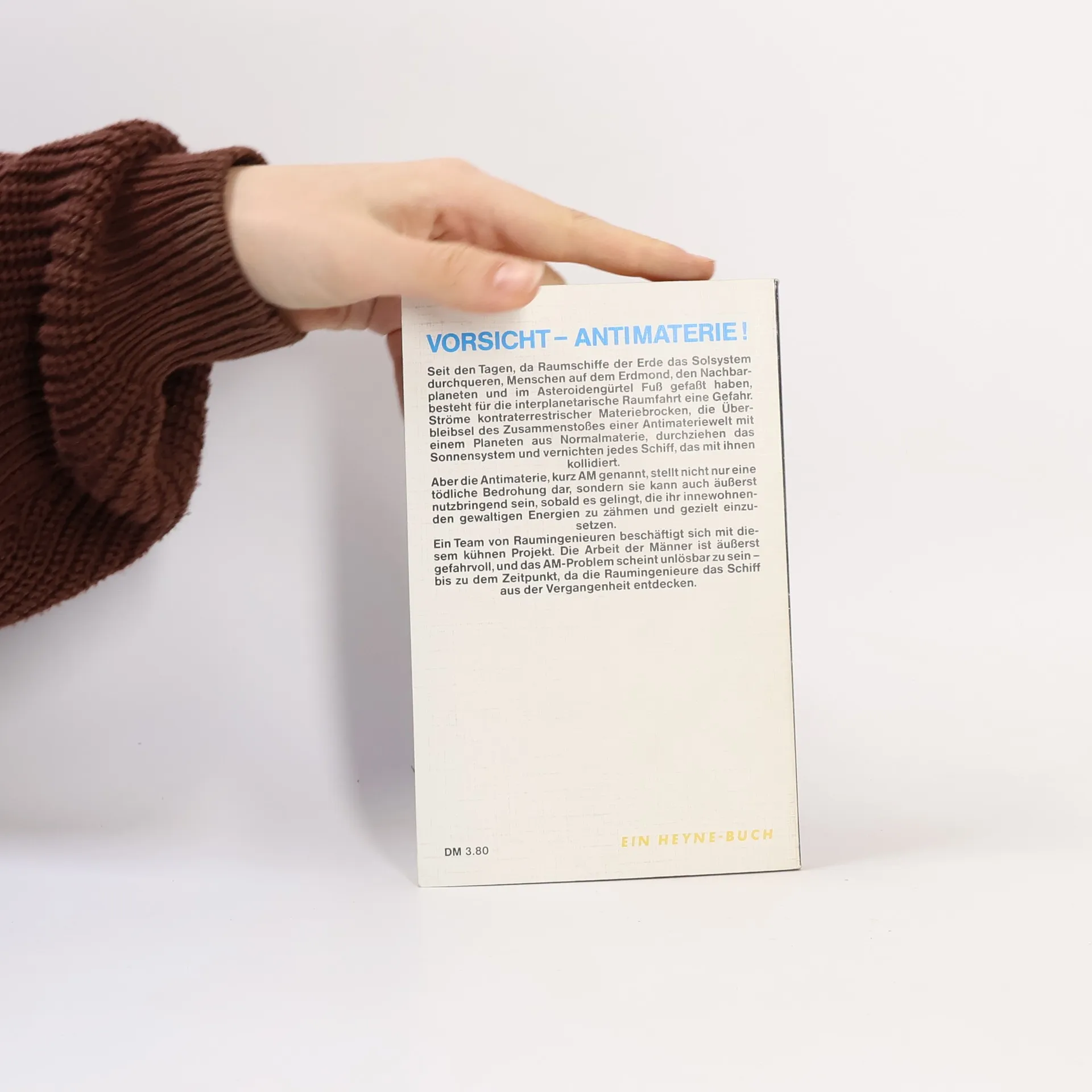Antihmota ist ein inverser Typ von Materie, aus dem eine Reihe von Meteoriten, Kometen und Asteroiden besteht. Antimateriepartikel haben eine entgegengesetzte elektrische Ladung – die Kerne sind negativ und die Elektronen positiv. Sie ähnelt der irdischen Materie, aber bei Kontakt neutralisieren sich die entgegengesetzten Ladungen und sowohl Materie als auch Antimaterie verwandeln sich in Energie. Im Vergleich zu dieser Reaktion ist die Spaltung von Uran vernachlässigbar. Kapitän Paul Anders kehrt von Studien auf der Erde zu seinem Heimatasteroid zurück, um seinem Vater zu helfen, die Antimaterie zu kontrollieren und gegen die Interplanetarische Gesellschaft zu kämpfen – ein Unternehmen, das die gesamte Region durch sein Monopol auf Energie beherrscht. Dies ist eine bedeutende Space Opera.