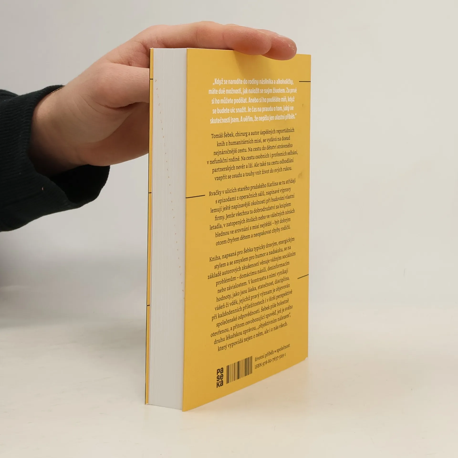 Tomáš Šebek, chirurg a autor úspěšných reportážních knih z humanitárních misí, se vydává na dosud nejnáročnější cestu. Na cestu do dětství stráveného v nefunkční rodině. Na cestu osobních i profesních selhání, partnerských nevěr a lží. Ale také na cestu odhodlání vzepřít se osudu a touhy vzít život do svých rukou. Rvačky v ulicích starého pražského Karlína se tu střídají s epizodami z operačních sálů, napínavé výpravy lemují ještě napínavější okolnosti při budování vlastní firmy. Jenže všechna ta dobrodružství za kniplem letadla, v zatopených štolách nebo ve válečných zónách blednou ve srovnání s misí nejtěžší – být dobrým otcem čtyřem dětem a neopakovat chyby rodičů. Kniha, napsaná pro Šebka typicky dravým, energickým stylem a se smyslem pro humor a nadsázku, se na základě autorových zkušeností věnuje vážným sociálním problémům – domácímu násilí, dezinformacím nebo závislostem. V kontrastu s nimi vynikají hodnoty, jako jsou láska, statečnost, disciplína, vášeň či vděk, jejichž pravý význam je objevován při každodenních příležitostech i v širší perspektivě společenské odpovědnosti. Šebek píše bolestně otevřenou, a přitom osvobozující zpověď, jež je svého druhu lékařskou zprávou, „objektivním nálezem“, který vypovídá nejen o něm, ale i o nás všech.
