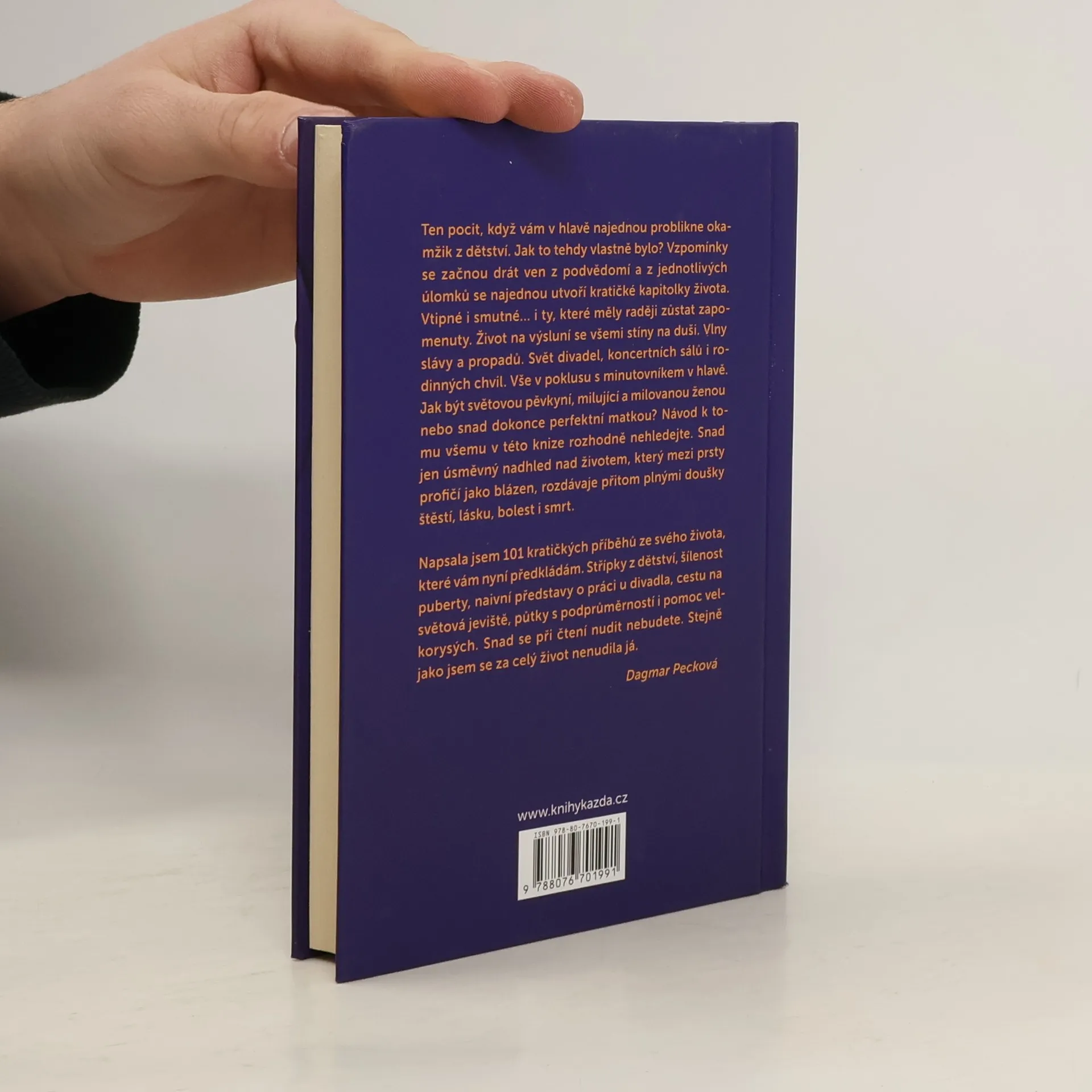 Ten pocit, když vám v hlavě najednou problikne okamžik z dětství. Jak to tehdy vlastně bylo? Vzpomínky se začnou drát ven z podvědomí a z jednotlivých úlomků se najednou utvoří kratičké kapitolky života. Vtipné i smutné… i ty, které měly raději zůstat zapomenuty. Život na výsluní se všemi stíny na duši. Vlny slávy a propadů. Svět divadel, koncertních sálů i rodinných chvil. Vše v poklusu s minutovníkem v hlavě. Jak být světovou pěvkyní, milující a milovanou ženou nebo snad dokonce perfektní matkou? Návod k tomu všemu v této knize rozhodně nehledejte. Snad jen úsměvný nadhled nad životem, který mezi prsty profičí jako blázen, rozdávaje přitom plnými doušky štěstí, lásku, bolest i smrt. Napsala jsem 101 kratičkých příběhů ze svého života, které vám nyní předkládám. Střípky z dětství, šílenost puberty, naivní představy o práci u divadla, cestu na světová jeviště, půtky s podprůměrností i pomoc velkorysých. Snad se při čtení nudit nebudete. Stejně jako jsem se za celý život nenudila já.