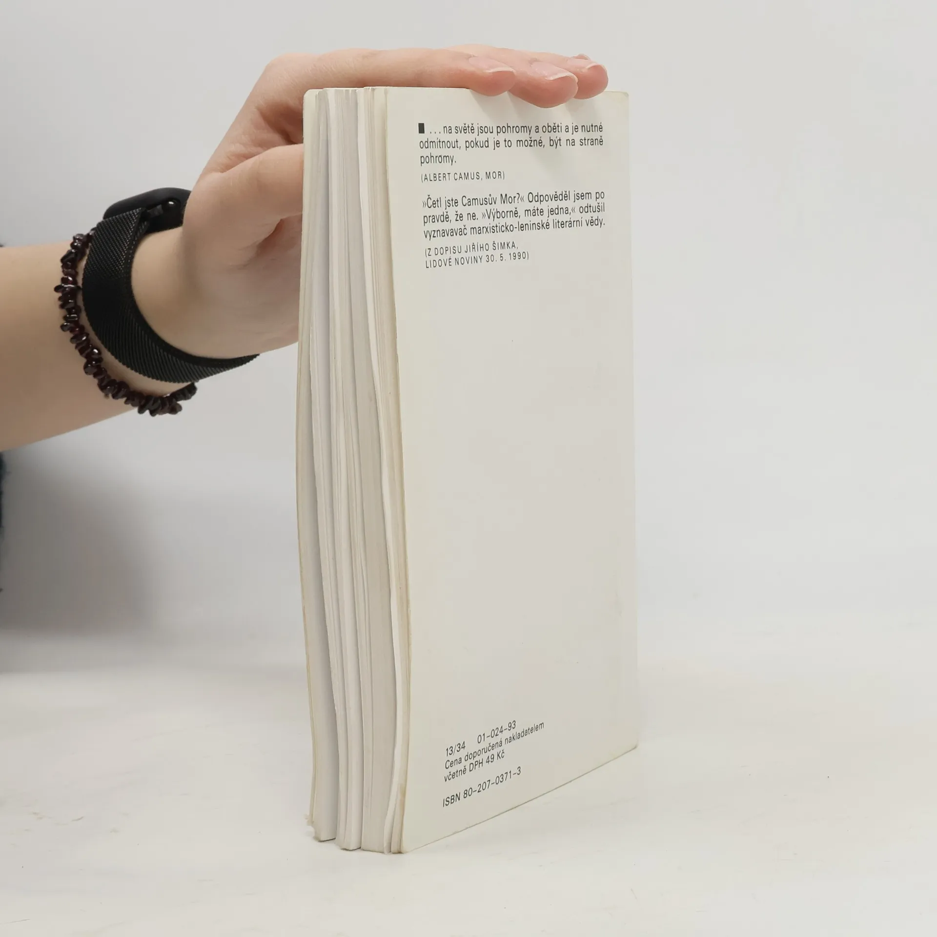 Jednoho dne najde lékař Bernard Rieux před svou ordinací mrtvou krysu. Na zdánlivě banální událost vzápětí zapomene, ale ve dnech následujících začnou krysy houfně vylézat ze svých děr a kanálů a v agonii umírají na chodníku. Brzy se příznaky podivné epidemie objeví i u lidí a obětí přibývá geometrickou řadou... O Moru (1947) si Albert Camus poznamenal do svého Zápisníku, že má ráz „mytického příběhu“. Mytický a filozofický význam má především epidemie sama; lze ji chápat jako alegorii okupačních let, ale i v mnohem existenciálnějším měřítku jako samo zkonkretizované absurdno, jemuž Bernard Rieux, typický Camusův hrdina, vzdoruje civilně a bez hrdinských gest. Doslov napsal Václav Jamek.