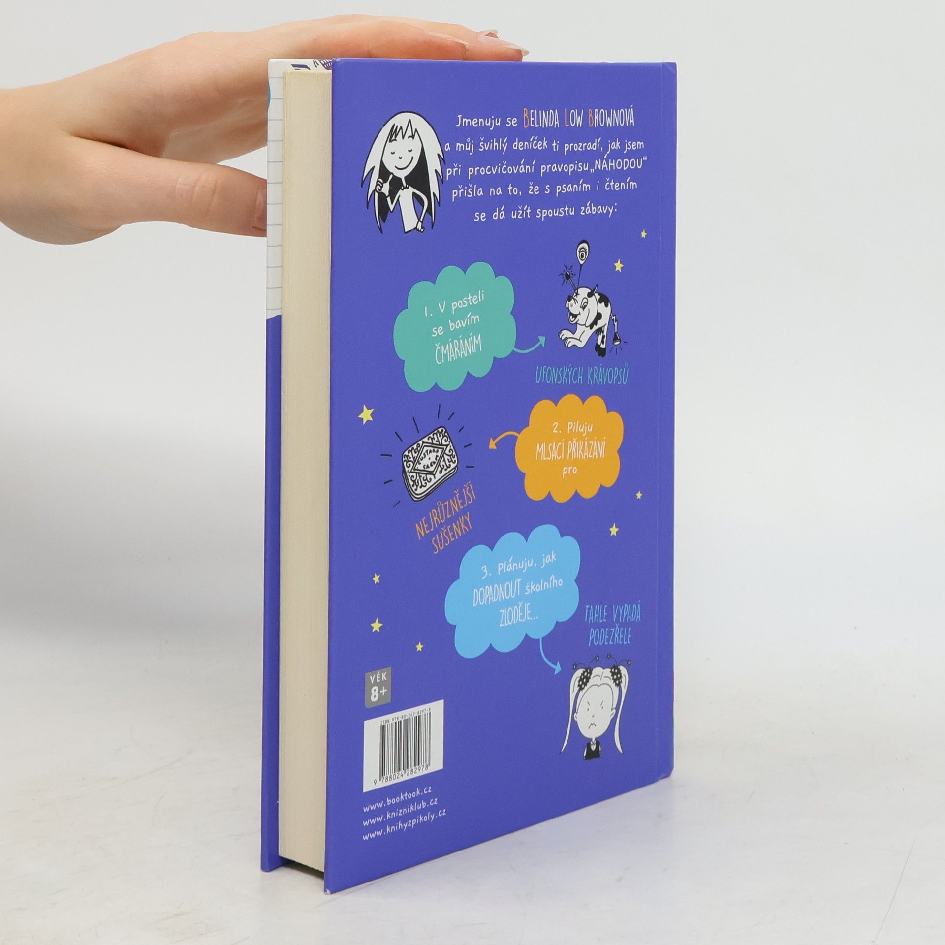 Seznam se s Belindou Low Brownovou a jejím speciálním deníkem. Původně si v něm tedy měla cvičit svoji děsivou gramatiku, ale ono se to tak nějak no prostě se to zvrhlo jiným směrem. Belinda je docela obyčejná holka, chodí do školy, má kamarády, sem tam nějaký ten průšvih jo a taky má dvě mámy, které se budou brát. Prostě normálka. Až na to, že nová spolužačka si až nějak moc dobře rozumí s Belindinou nejlepší kámoškou. A učitelce Robinsonové se ve škole ztratí kabelka. Někdo tady rozhodně krade! Ale Belinda je pevně rozhodnutá toho chmatáka odhalit. Tak na co ještě čekáš? Pusť se do čtení! Tohle dobrodružství bude rozhodně stát za to Sdílet 0