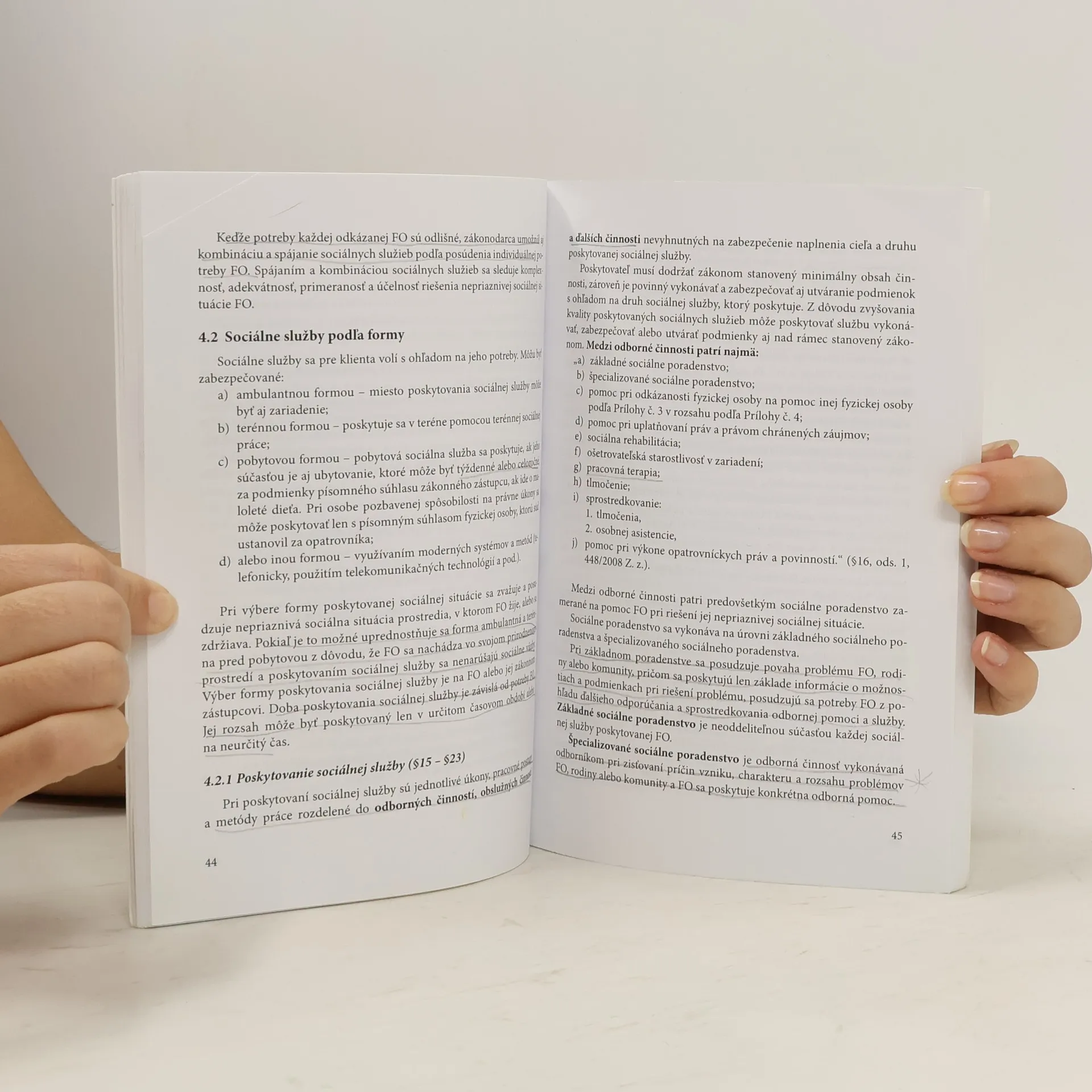 Monografia 'Sociálne služby v legislatíve a v praxi' má nadštandardnú odbornú a informačnú úroveň, má všetky predpoklady na pôsobenie v slovenskej sociálnej, pedagogickej literatúre i v ostatnej odbornej literatúre po vydaní ako kvalitná monografia v oblasti sociálnej politiky. Text je 'nabitý' informáciami v zrozumiteľnej podobe, čitateľ nájde množstvo informácií pre svoju potrebu, pričom ťažiskom je komentovanie základného zákona v oblasti sociálnych služieb z roku 2008.