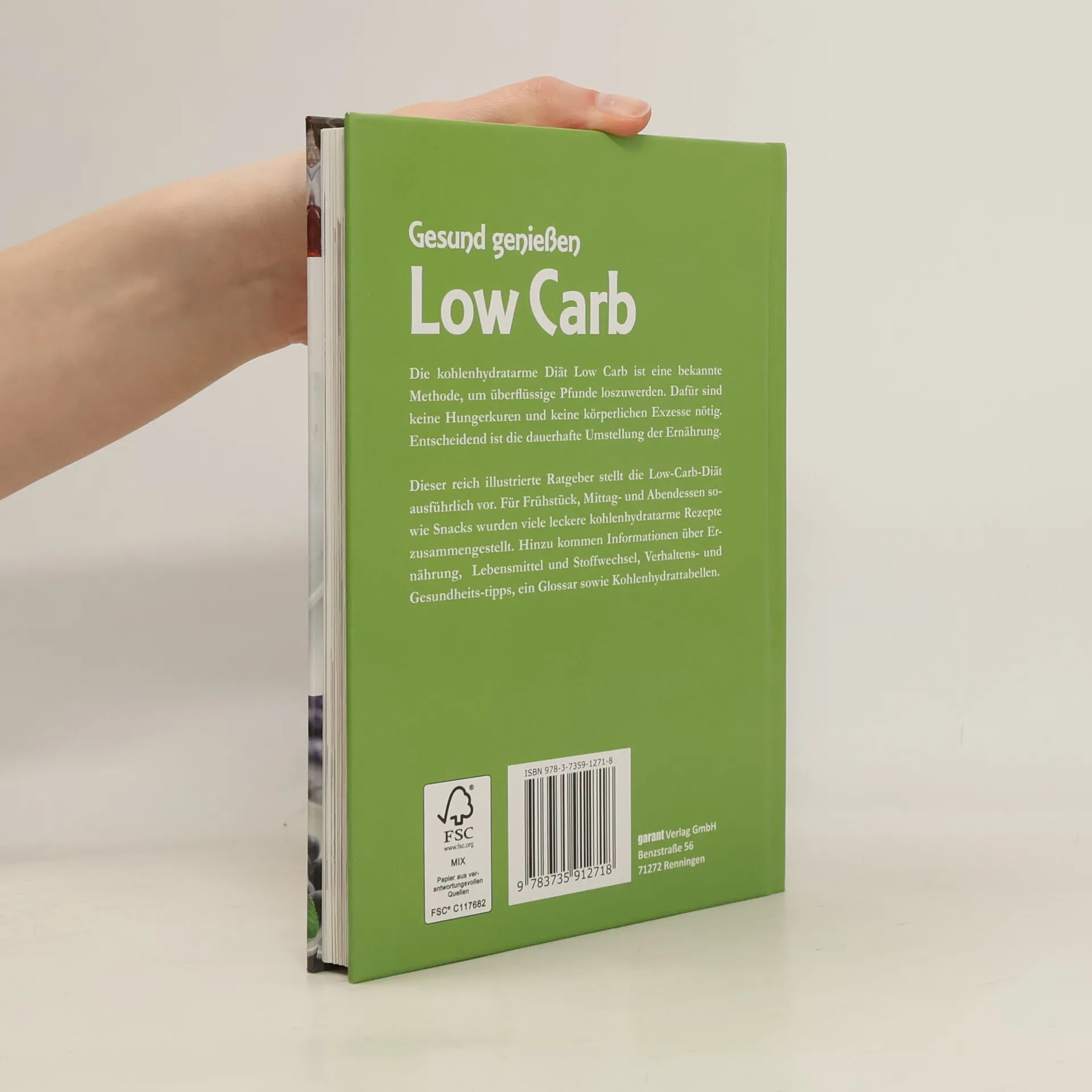 Die kohlenhydratarme Diät Low Carb ist eine bekannte Methode, um überflüssige Pfunde loszuwerden. Dafür sind keine Hungerkuren und keine körperlichen Exzesse nötig. Entscheidend ist die dauerhafte Umstellung der Ernährung. Dieser reich illustrierte Ratgeber stellt die Low-Carb-Diät ausführlich vor. Für Frühstück, Mittag- und Abendessen sowie Snacks wurden viele leckere kohlenhydratarme Rezepte zusammengestellt. Hinzu kommen Informationen über Ernährung, Lebensmittel und Stoffwechsel, Verhaltens- und Gesundheits-tipps, ein Glossar sowie Kohlenhydrattabellen.