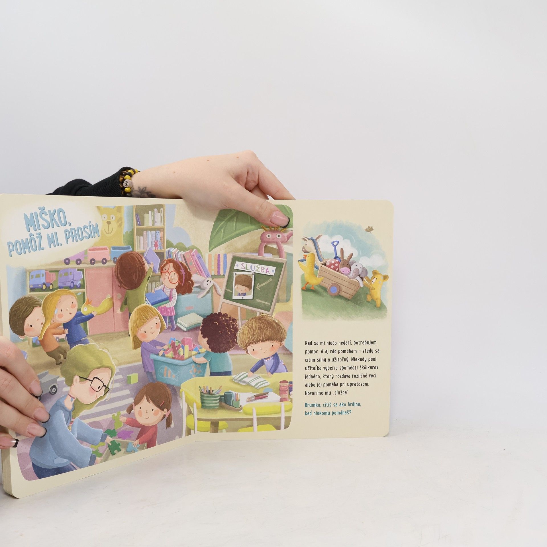 Predškolák Miško so svojím plyšovým kamarátom Brumkom naučia deti, ako sa slušne správať doma aj v spoločnosti. Miško chodí do škôlky a nadišiel čas zoznámiť sa s pravidlami slušného správania. Dozvie sa, že v rôznych situáciách by sa mal správať určitým spôsobom. Vďaka tomu, že spozná pravidlá predškoláka, naučí sa, ako sa má jesť pri stole, kedy treba používať čarovné slovíčka prosím, prepáč a ďakujem, alebo čo robiť v divadle.Táto knižka voľne nadväzuje na leporelo Miško a Brumko idú do škôlky a vhodným spôsobom zoznamuje deti s jednoduchými pravidlami slušného správania. Milé ilustrácie zobrazujú situácie z prostredia rodiny a škôlky, ktoré sú dieťaťu blízke. Vďaka tomu si ich môže ľahšie predstaviť a prežívať podľa vlastných skúseností. Deti by sa mali s jasnými a konkrétnymi pravidlami slušného správania zoznamovať od útleho veku na základe spolužitia v sociálnej skupine, aby potom v dospelosti dokázali dobre fungovať v spoločnosti.