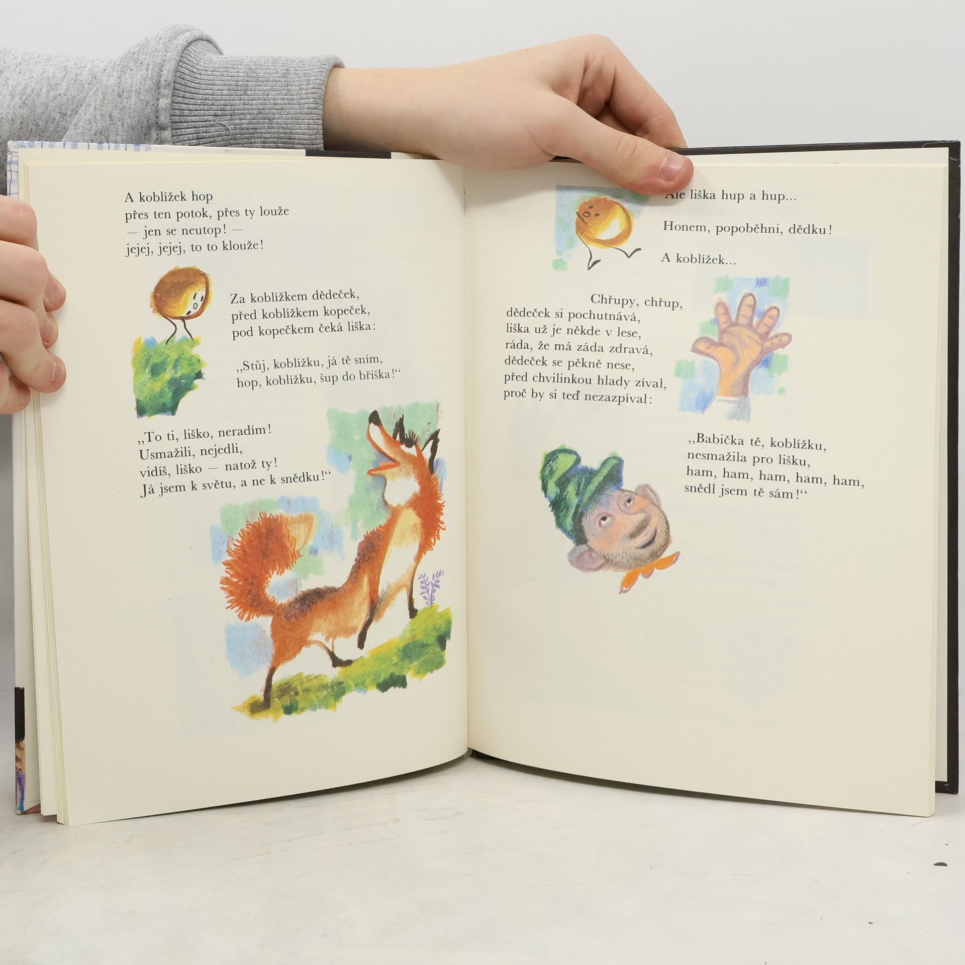 Známé pohádky přebásnil nádherným jazykem František Hrubín a vznikla půvabná knížka pro nejmenší děti. V hravých a dobře zapamatovatelných verších se děti skamarádí s Červenou karkulkou, Budulínkem, Otesánkem, Palečkem i Smolíčkem, ochutnají Perníkovou chaloupku, Dědečkův koblížek i Velikou řepu, proběhnou se s kuřátkem v obilí a se zvířátky v začarovaném lese. Půvabná a nestárnoucí knížka, po níž je stále sháňka, je vhodná k předčítání i pro první samostatné čtení.